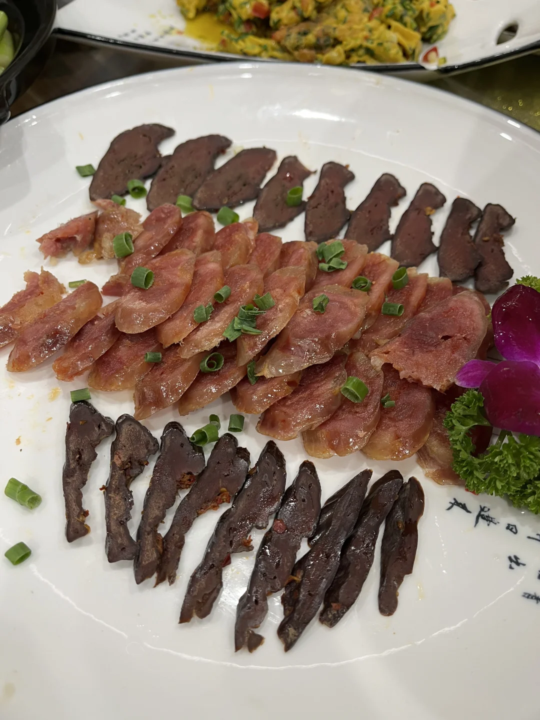 一定要来一碟子农家香肠和风吹猪肝的拼盘,与主理人交好的我们会喝一杯他私藏的好酒,在岁月的氤氲下,时光将粮食酿造的白酒打磨成了琼浆玉液,持杯子一看,微微黄,便知是好酒啦!