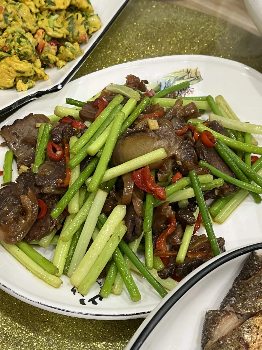 大片驴肉,以蒜薹来烹炒,这是北方的做法。“天上龙肉,地下驴肉”,从齐鲁到直隶,无人不爱驴肉,私以为保定驴肉胜过河间驴肉,前者驴肉火烧浑圆肉多,豪放,后者驴肉火烧裹以青椒,清雅。