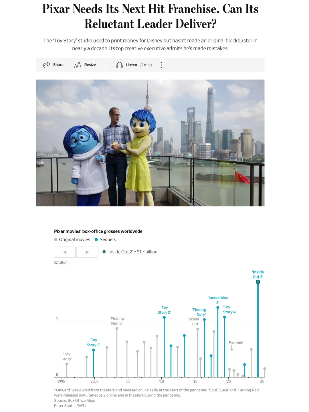 🤔 华尔街日报采访皮克斯工作室首席创意官彼得·道格特,他开玩笑说:“皮克斯找不到下一个爆款,可能是因为我。”