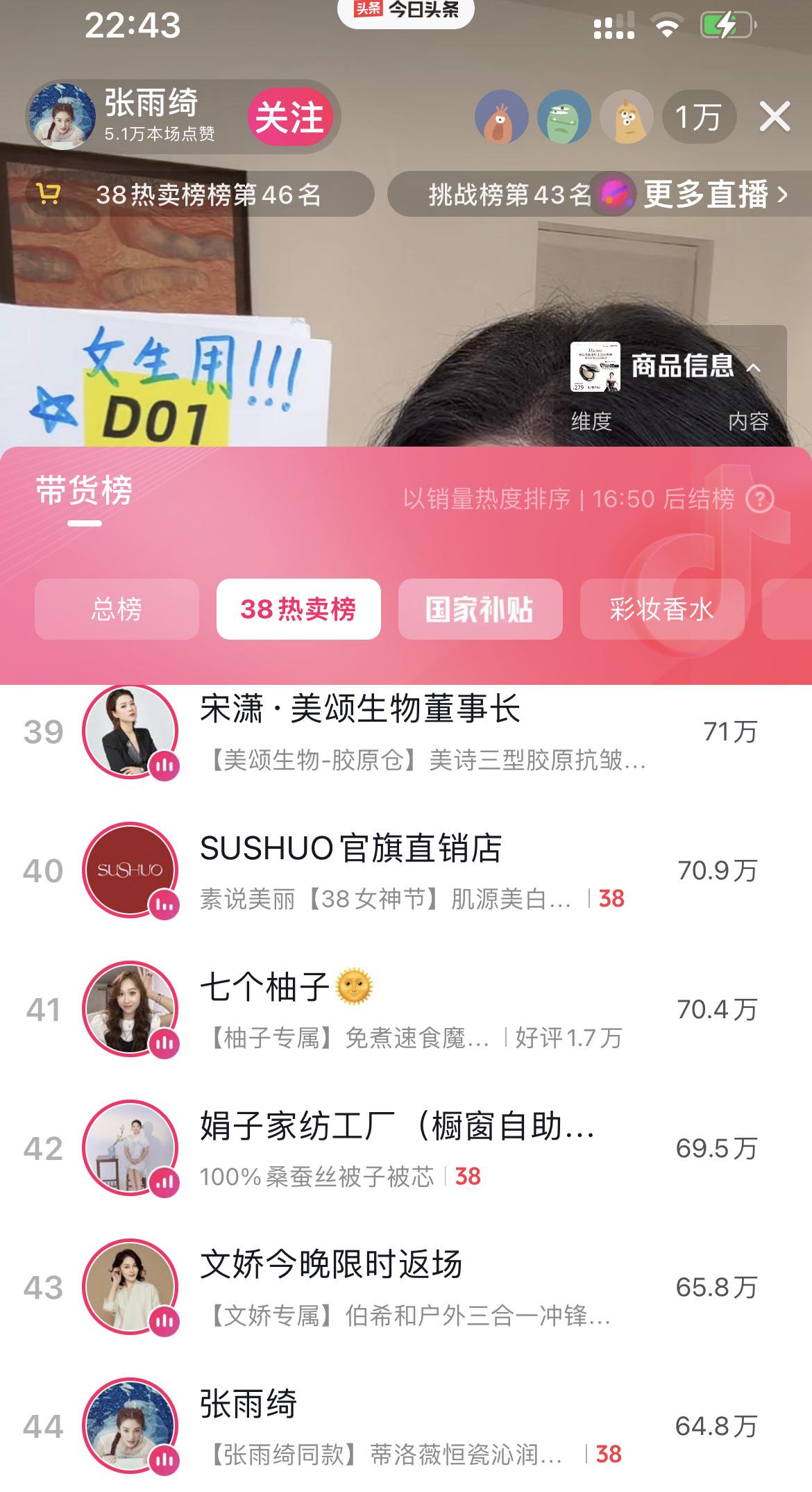 姐姐好美! 张雨绮3.8日复出直播,在线人数1万+,带货某化妆品,279元的润粉膏卖了近4千单,上榜3.8热卖榜! 张雨绮穿着黑色外套,随意地扎个低马尾,脸明显变瘦了,妆容也比较柔和,评论区纷纷留言,姐姐好美! 姐姐也是专心讲品,对前段时间的风波三缄其口!