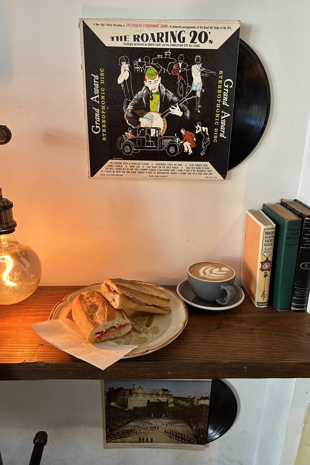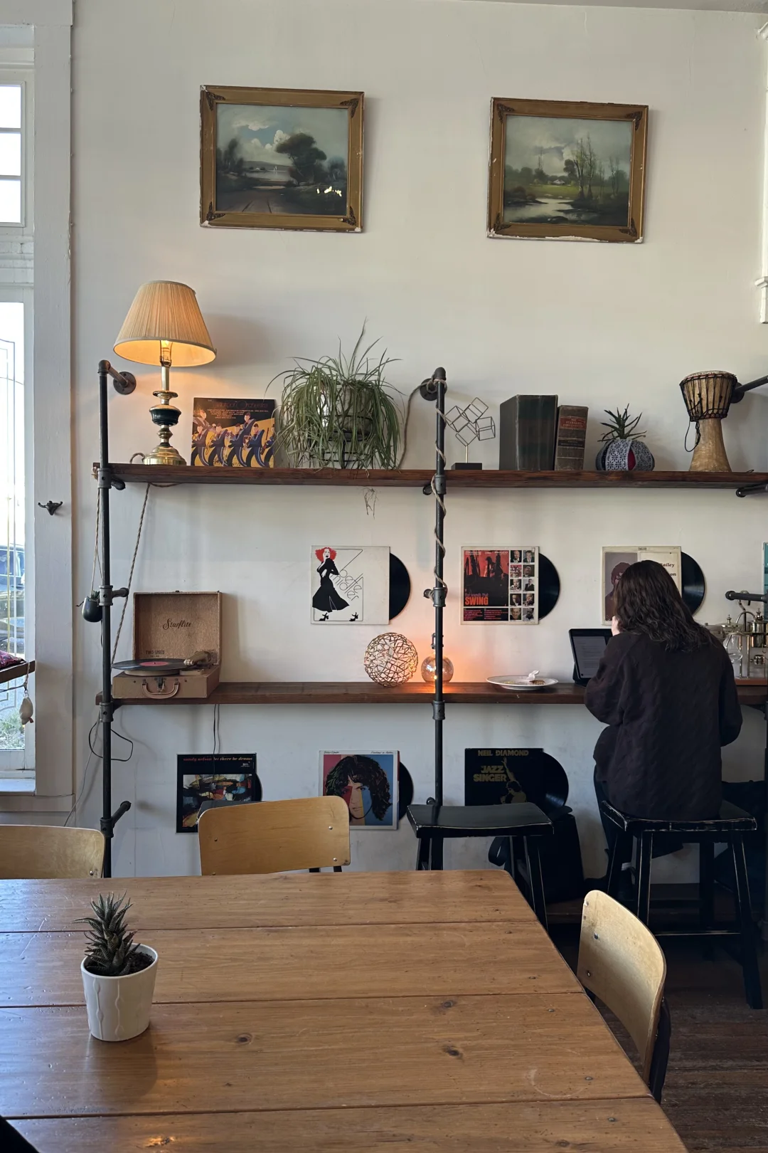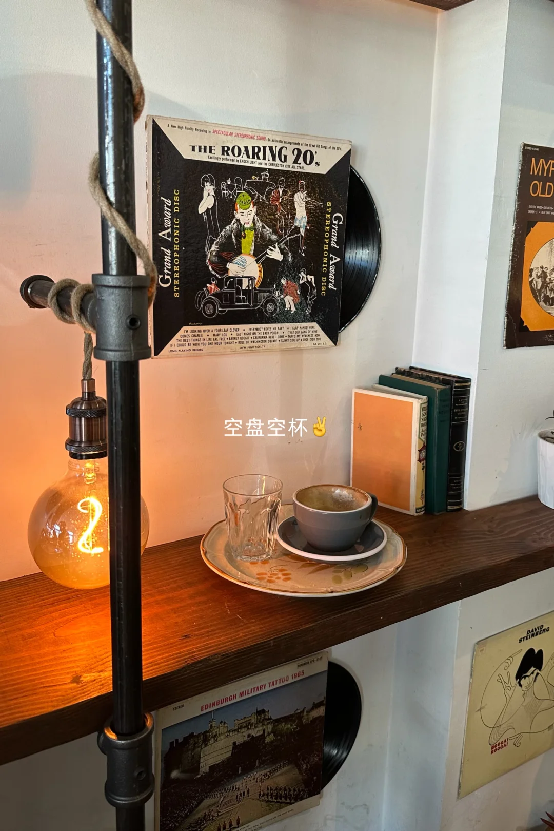 走进店里,标志性的黑胶唱片墙,阳光斜洒在木桌上、聊天的人…每一处都像电影片段。