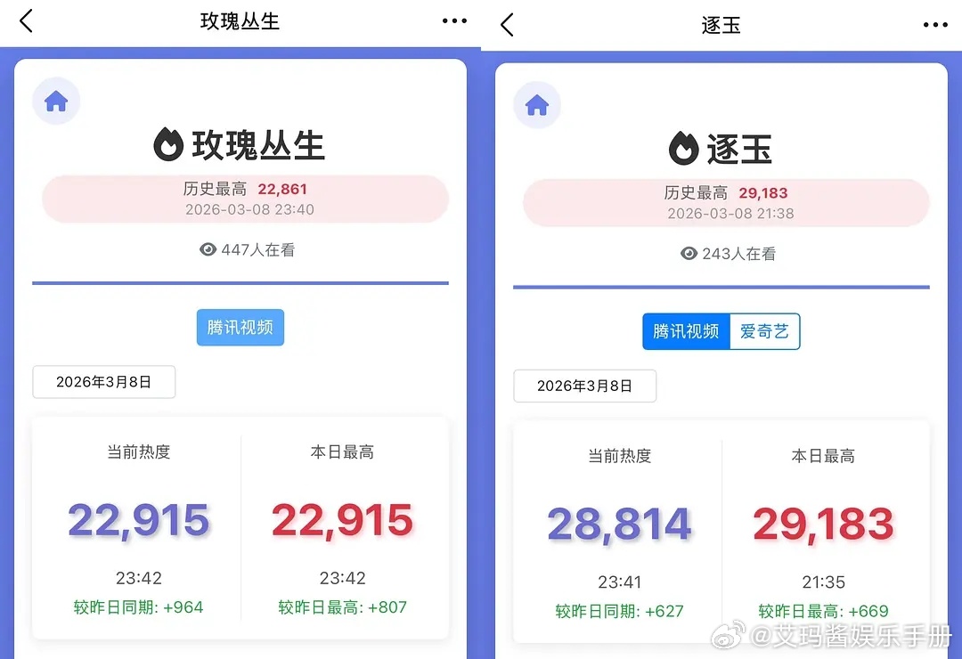 好家伙!王子文 刘宇宁《玫瑰丛生》比张凌赫 田曦薇《逐玉》热度值涨得还要快