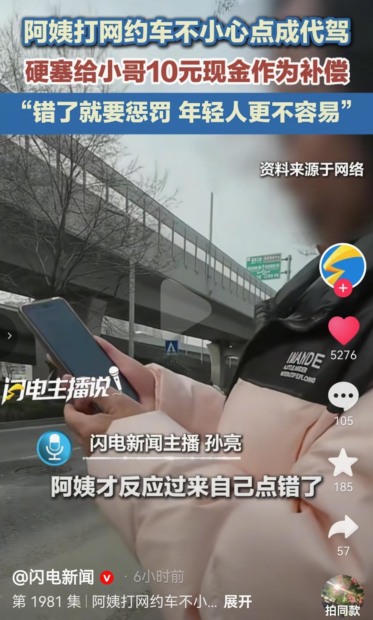太讲究了!一位阿姨本来想打个网约车出门,由于自己打车不太熟练,在打车的时候,一不小心手机屏幕上点点错,直接把代驾给叫来了! 代驾小哥以为来单了,风风火火地骑着电动车,赶了5公里的路赶到现场,一看没有车,只有一辆电动车。 阿姨还在那儿找呢:“车呢?我叫的车呢?” 等小哥说明自己是代驾,阿姨这才反应过来,哎呀,是自己搞错了! 按说现在好多人遇到这种事儿,可能心里会嘀咕:“是你自己点错的,又不是我的问题,这钱我可不出”,或者干脆找平台扯皮。可咱们这位阿姨,想法那是相当通透! 她觉得,错了就要认,账不能让年轻人吃亏。 于是乎,不管小哥怎么客气推辞说“不用赔”,阿姨硬是把10块钱现金塞到了小哥手里,还语重心长地说了句:“现在年轻人更不容易!” 就这一句话,这一个动作,直接把我给戳中了! 网友看到后评论说:“这才是真正的高素质!比那些耍无赖的强一百倍!” 也有的网友说:“10块钱不多,但这份教养和尊重,千金不换!” 还有的网友说:“被阿姨暖到了,老一辈人的通透和善良,真的刻在骨子里。” 咱们现在的生活,是不是太容易推卸责任了?点错了、做错了,第一反应总是找借口、找理由,生怕自己亏了一分一毫。 可阿姨呢?活了大半辈子,她懂一个理儿:做人要讲义气,做事要敢担当。 她也知道,代驾小哥晚上跑单不容易,风吹日晒的赚点辛苦钱。自己一个失误,耽误了人家时间,还让人家白跑一趟,心里过意不去。 所以她不管小哥愿不愿意,一定要塞这10块钱。这不是钱多钱少的事,这是体面,是尊重! 这一幕让我想到,我们有时候太精明、太算计了,反而丢了最朴素的善良。阿姨一句“年轻人更不容易”,简单朴实,却道出了多少人的不易。她用自己的方式,温暖了这个深夜里奔波的人,也给我们上了生动的一课: 愿我们每个人,在犯错的时候都有敢于承担的勇气,在看到别人不易的时候,都存一份善良的体谅。 对此,你怎么看?
