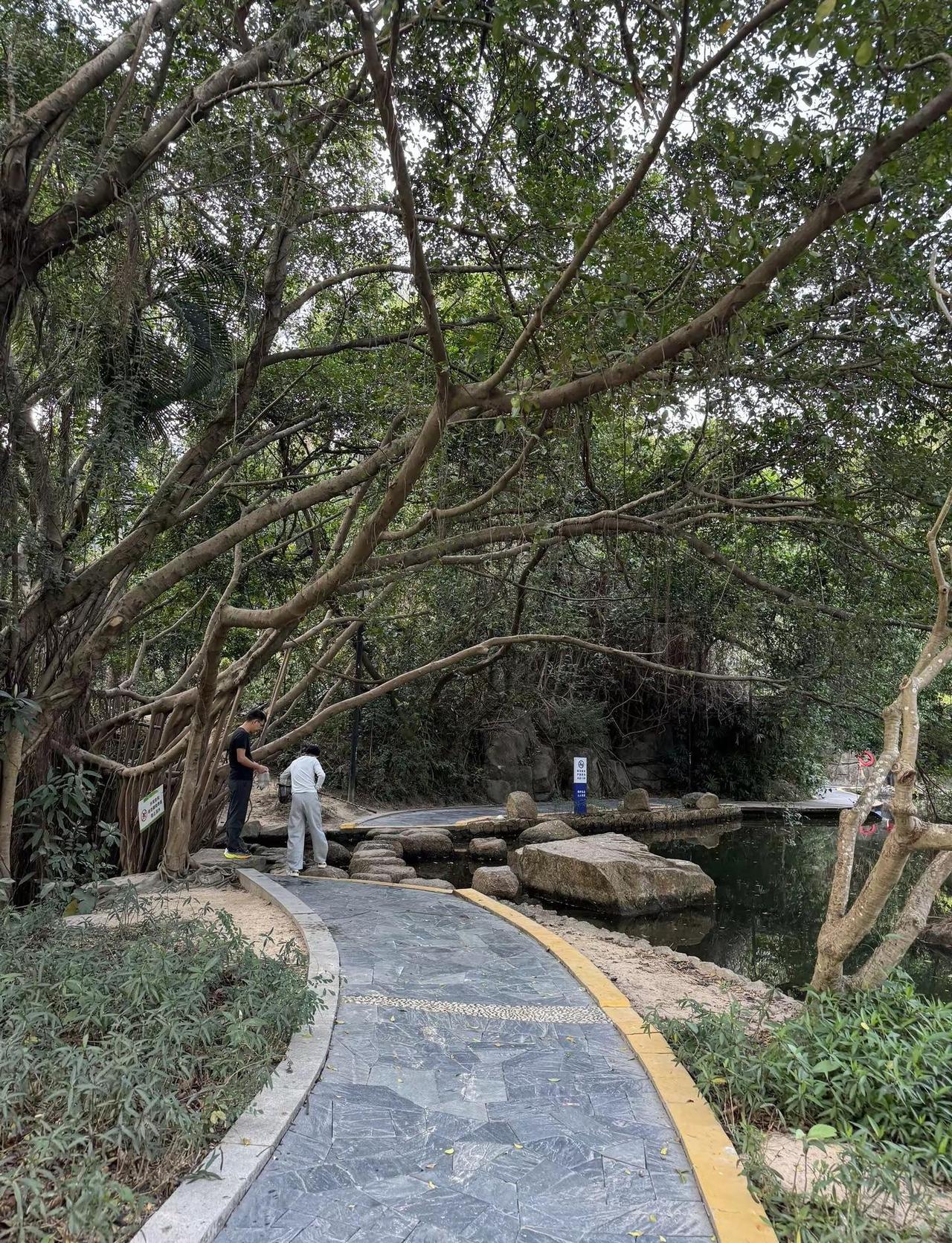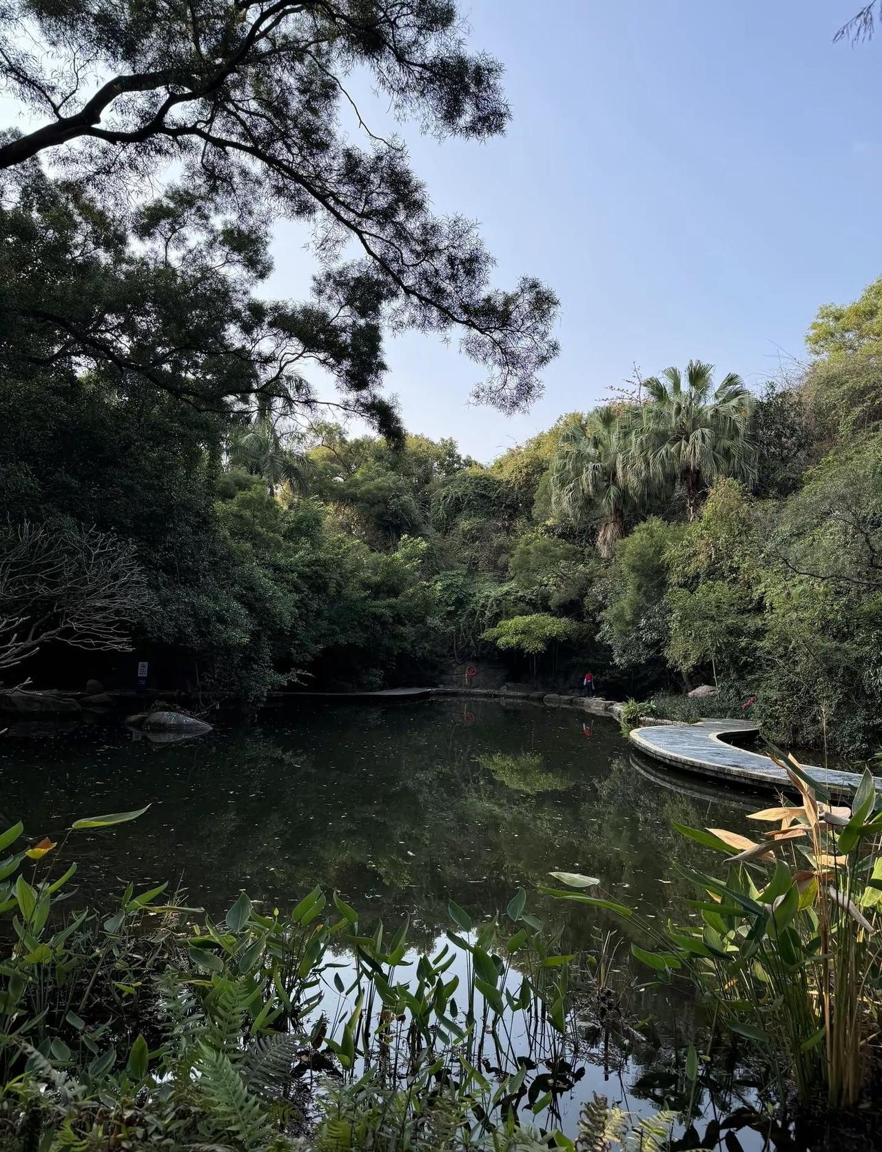 燕晗山郊野公园|藏在华侨城的绿野仙踪。免费还地铁直达,1号线华侨城B口出来走5分钟就到,不用门票不用预约太香了 。进门左转30米就是水上浮桥,木栈道贴着湖面延伸,俯拍真的有亚马逊雨林那味儿,雨后石壁还有小瀑布,水流不大但氛围感拉满。主步道全是平缓石板路。半山腰那棵百年榕树绝了,阳光穿过树叶形成天然光影门洞,手机放地上仰拍,还有大片草坪,带块野餐垫就能瘫一下午,树荫多不怕晒。相思树和荔枝林超治愈,空气里都是青草香,偶遇好几只不怕人的猫咪,缺点就是周末人稍多,建议早9点前到。📍地址:南山区侨城东街6号🚇交通:1号线华侨城B口步行5分钟🎫门票:免费⏰最佳时间:9:00前/16:00后👨👩👧👦推荐:遛娃、拍照、野餐、Citywalk深圳公园 深圳打卡