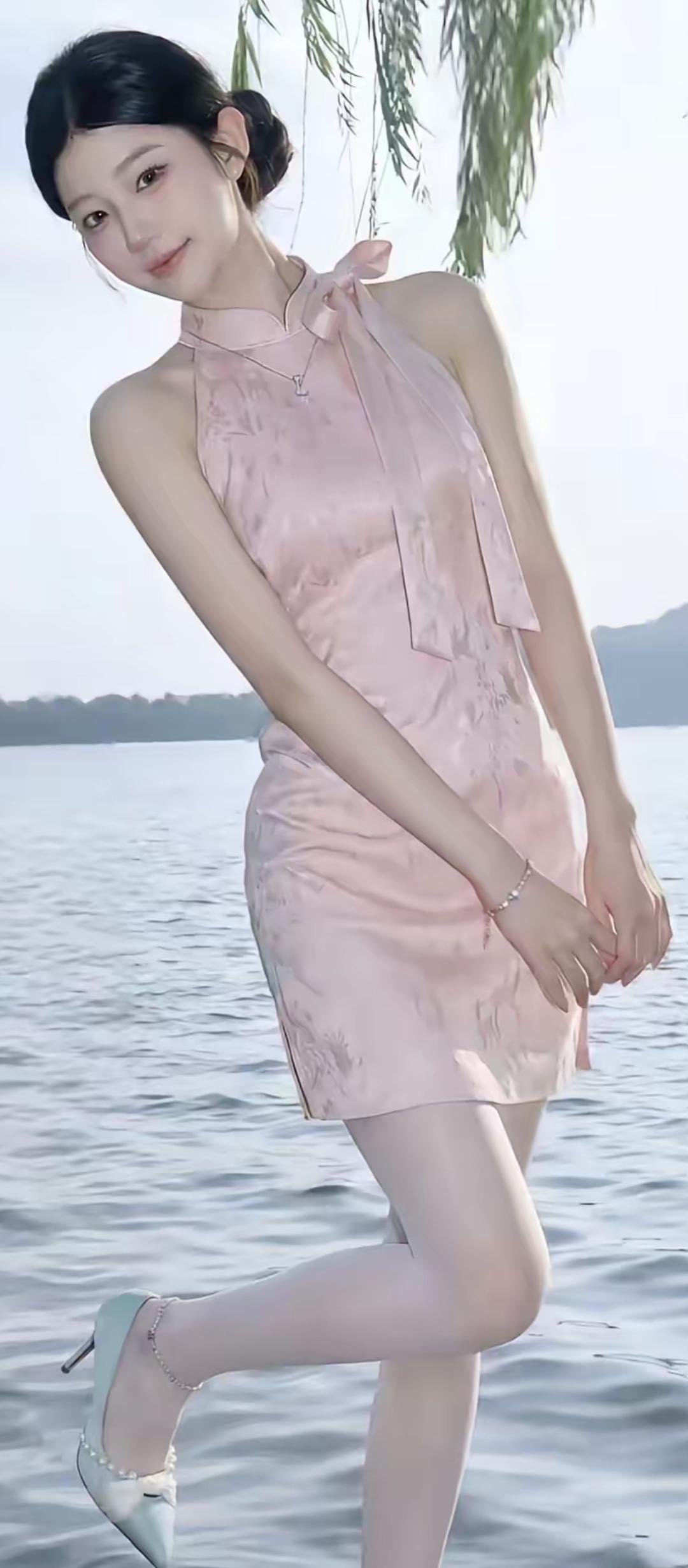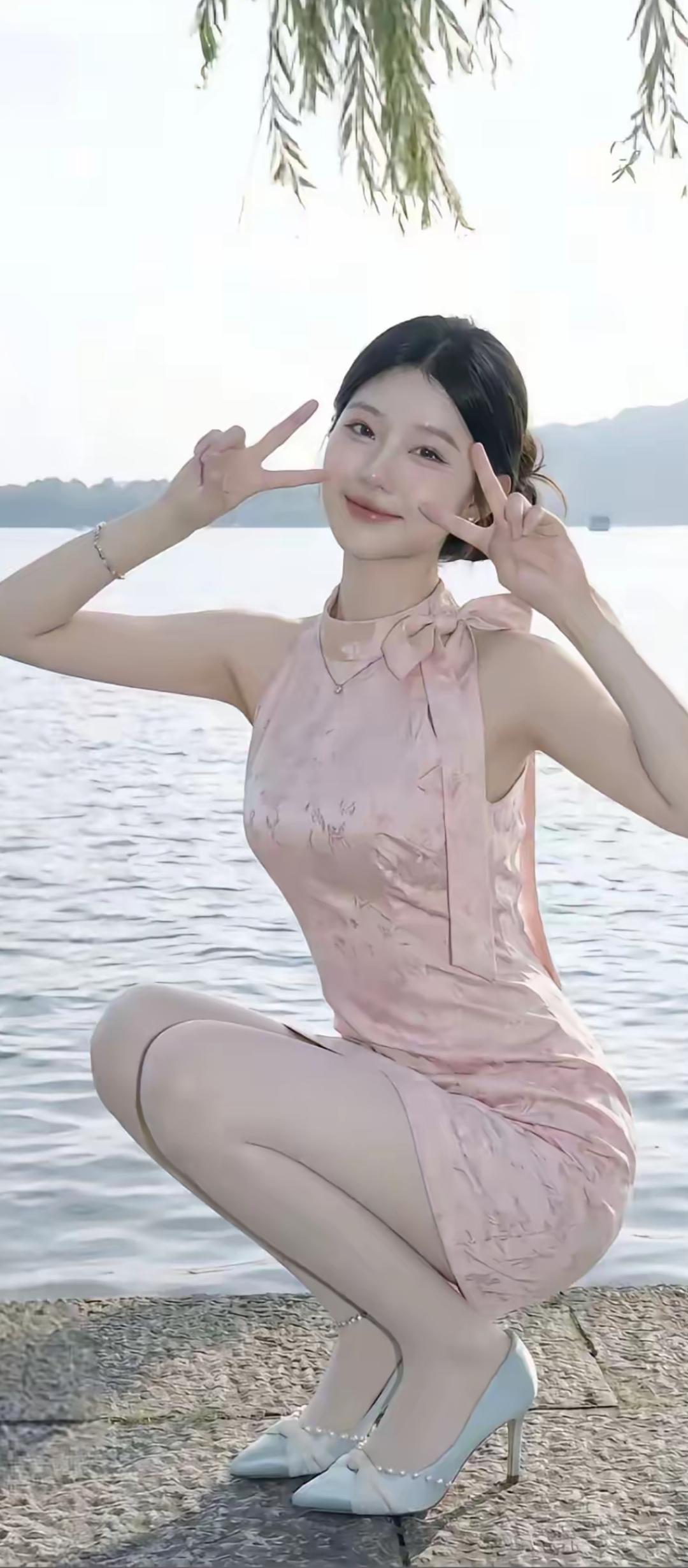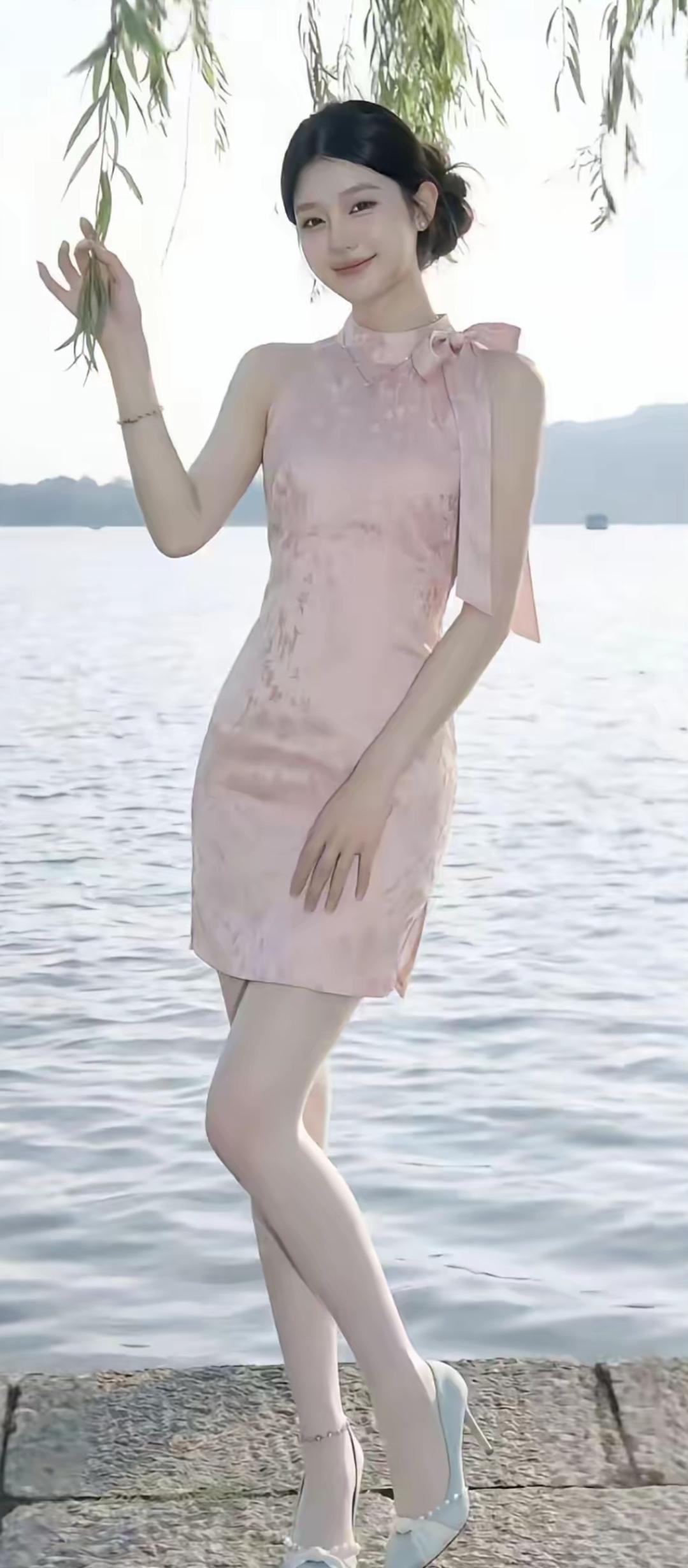 湖畔轻纱拂,风姿动人时。