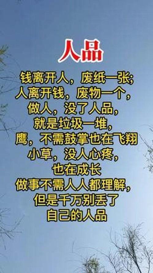 人品。 金钱是交往的“加分项”,但人品才是决定关系能走多远的“地基”。 有人腰缠万贯却谎话连篇,借你钱时拍胸脯,还钱时玩消失;有人经济普通却事事有担当,你落魄时伸出援手,得意时不巴结讨好。 真正的朋友,不会因你有钱就阿谀奉承,也不会因你潦倒就落井下石;靠谱的伴侣,会和你一起规划未来,而不是把感情明码标价。 钱能买到一时的热闹,但买不来真心;能撑得起场面,却撑不起信任。和人相处,人品不过关,早晚会在利益面前现原形——毕竟,人性的贪婪会透支所有关系,而人性的善良才能守住长久的情分。