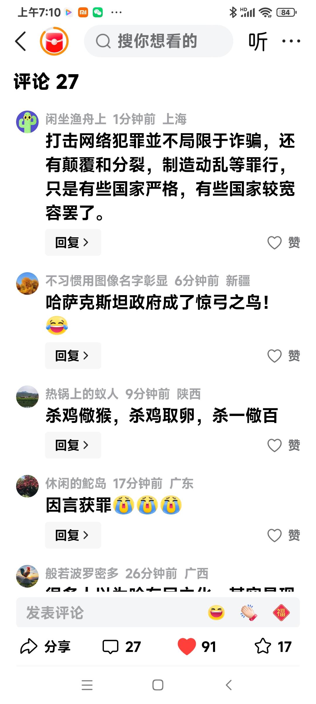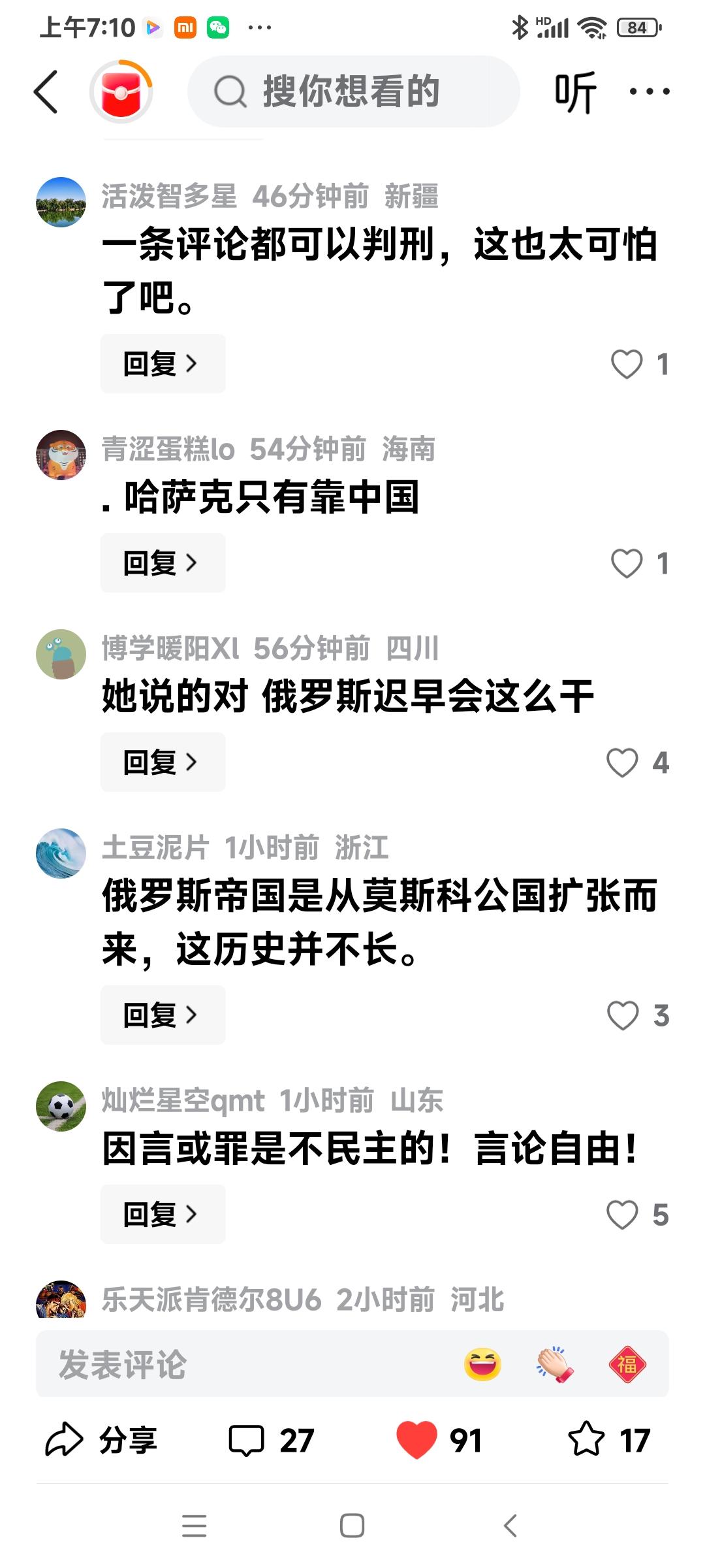 吴大辉:哈国一女子因发表不当评论获刑 我国著名的俄罗斯问题专家,清华大学国际关系学系教授吴大辉先生报道,哈萨克斯坦法院最近判处该国俄罗斯族女性塔季扬娜·利佐古布5年监禁,起因是她在TikTok一条关于彼得罗巴甫洛夫斯克可能改名的视频下发表了如下评论: ——“彼得罗巴甫洛夫斯克是俄罗斯的,绝对不是哈萨克斯坦的……现在有人想偷走,但没关系,很快一切都会回到原位……到时候我们会笑的。” 哈萨克斯坦调查部门认为这些言论具有社会危害性,涉嫌威胁国家领土完整。控方称此类言论可能制造政治风险,煽动重新划分国家边界的讨论。 这位俄罗斯女子在网上发表一条评论就获5年徒刑,有人认为这是典型的因言何罪,就是标准的文字狱,网友“活泼智多星”认为“一条平证都可以被判刑,这也太可怕了。”“灿烂星空”网友也发表评论:“因言获罪是不民主的,言论自由!”还有人说“哈萨克斯坦政府已经成了惊弓之鸟”。很多人明显不支持哈萨克斯坦的这种做法。 当然也有人只是哈萨克斯坦,网友“坐在渔舟上”认为:“打击网络犯罪并不局限于诈骗,还有颠覆和分裂,制造动乱的罪行,只是有些国家严格,有些国家宽松罢了。” 看来哈萨克斯坦就属于比较严格的国家,当局将该言论定性为“宣传破坏哈萨克斯坦领土完整思想”罪,大概作为与俄罗斯接壤的国家,且国内有大量的俄罗斯族人的哈萨克斯坦对这一问题应该是相当敏感的。 这也给我们提了一个醒,网络不是法外之地,写文章,发评论都要遵守法律法规,千万不要胡说八道,给自己理麻烦。