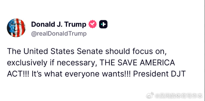 【黄金时代】川普总统刚刚呼吁参议院共和党人“如有必要,应全力以赴”审议《拯救美国法案》。