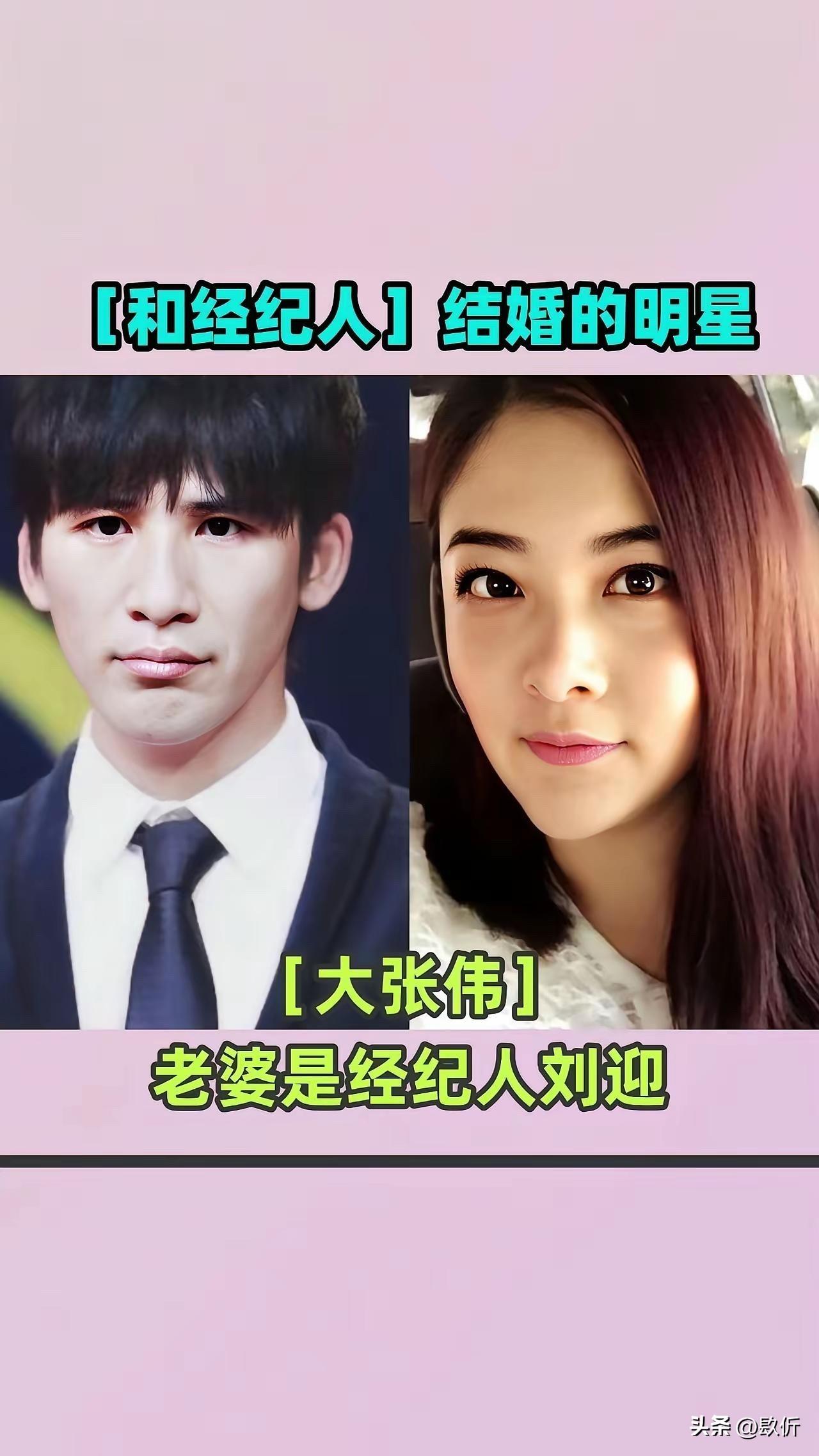 娱乐圈这个地方,明星跟经纪人朝夕相处,日久生情的事儿太多了。经纪人知道明星的所有事儿,陪着他们走过低谷高峰,最后修成正果的也不少。 胡歌那可是咱国内的顶流男星,《仙剑奇侠传》里的李逍遥,《琅琊榜》里的梅长苏,哪个不是经典。他的感情路走得挺坎坷,跟薛佳凝那段伤了心,后来跟江疏影也没成。粉丝们都替他着急,天天催婚。 结果2023年1月,胡歌突然宣布结婚生女,老婆是他的执行经纪人黄曦宁。这一下可炸了锅,粉丝们都懵了:黄曦宁是谁? 黄曦宁比胡歌小几岁,福建人,原来是胡歌的服装助理,后来一步步升到执行经纪人。她陪着胡歌到处跑,处理各种事儿,是胡歌最信任的人之一。胡歌说过,他最困难的时候,是黄曦宁陪在身边。 大张伟,那可是娱乐圈的话痨,嘴碎得很,上节目就说个没完。他是花儿乐队出身,后来单飞,唱过《洗刷刷》《倍儿爽》,火得一塌糊涂。可你不知道的是,他老婆是他的经纪人刘迎。 大张伟和刘迎认识挺早的,刘迎原来也是经纪人,带过不少艺人。