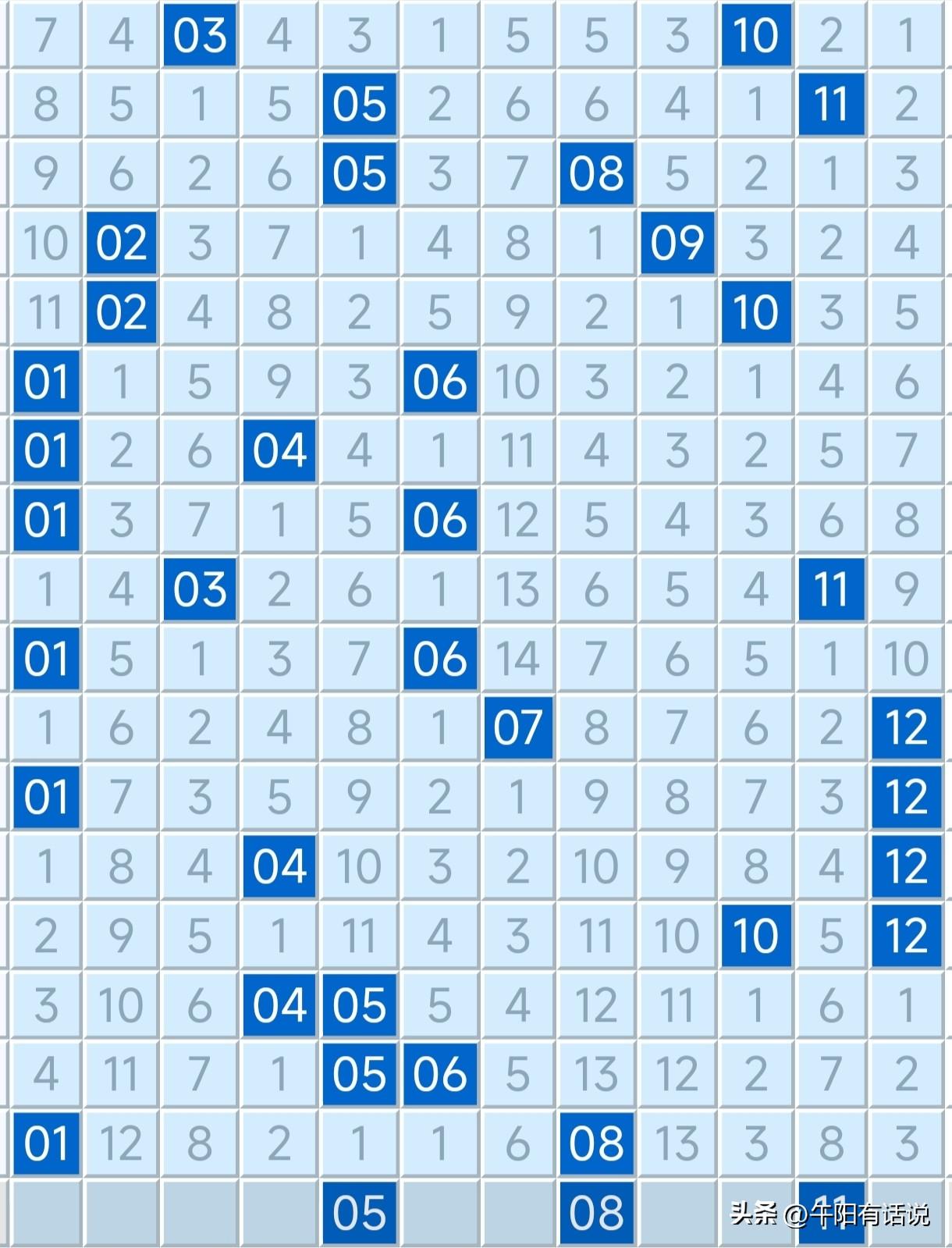 大乐透26024期号码共享,前区重点关注三区回补,后区防2路号热开 开奖快讯 超级大乐透26023期开奖号码为: 09 25 26 27 28 + 01 08 前区号码走势 本期前区开奖号码比较特殊,集多种特殊与一体。首先是奖号三区比相差悬殊,开出了1:0:4的比值,前一区和二区同时遇冷,而且前二区还开出了断区。 与之相反的则是前三区号码,出现了大爆发,开出了四个奖号,而且还是以四连号形式开出,这种情况非常少见。 前三区号码最近很长一段时间,一直处于冷开期,奖号开出数量多为一码,断区还间或开出。物极必反,冷极必热,本期前三区出现猛烈反弹,预计接下来即将迎来回补。 与此同时,前区奖号第二个特殊之处,在于重号出现了反弹热开,开出了两个奖号,分别为09和26,这与午阳在本期选号时判断一致。 最近一段时间,重号处于爆冷阶段,在十一期之内爆发出十期断区。最近两期重号出现回补,分别开出一个和两个奖号,由于重号当前偏冷严重,急需回补,预计接下来出现继续开出的概率较大。 后区号码走势 本期后区奖号开出了01-08,1路和2路号码组合。前几期,1路和0路号码组合连续五期搭配开出,2路号码遇冷。 最近三期,2路号码出现回补,截止本期已开出三期,由于2路号码走势偏冷,预计接下来继续回补的概率较大。 大乐透26024期晒号 前区号码: 02 11 14 19 20 25 29 34 后区号码: 05 08 11 精选一注 11 14 19 25 34 + 08 11