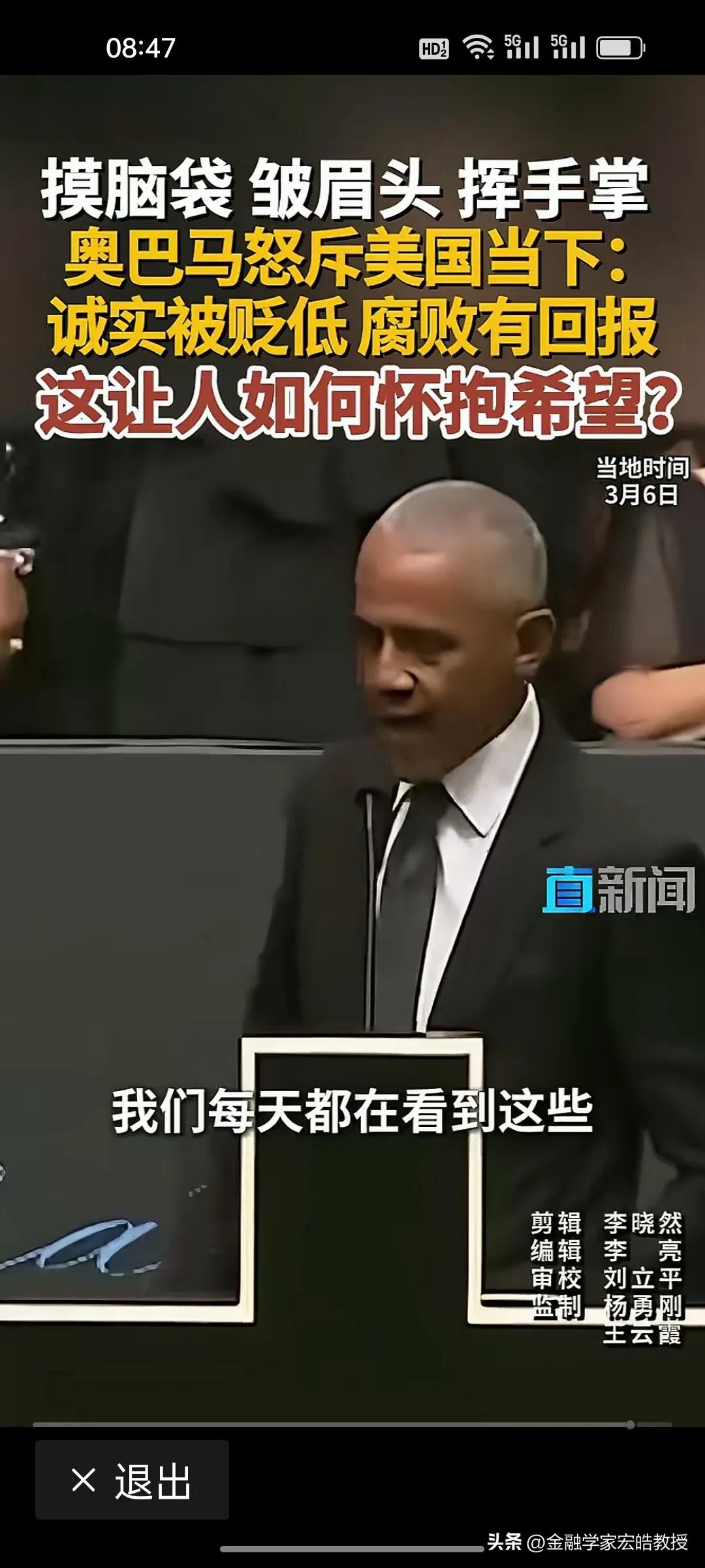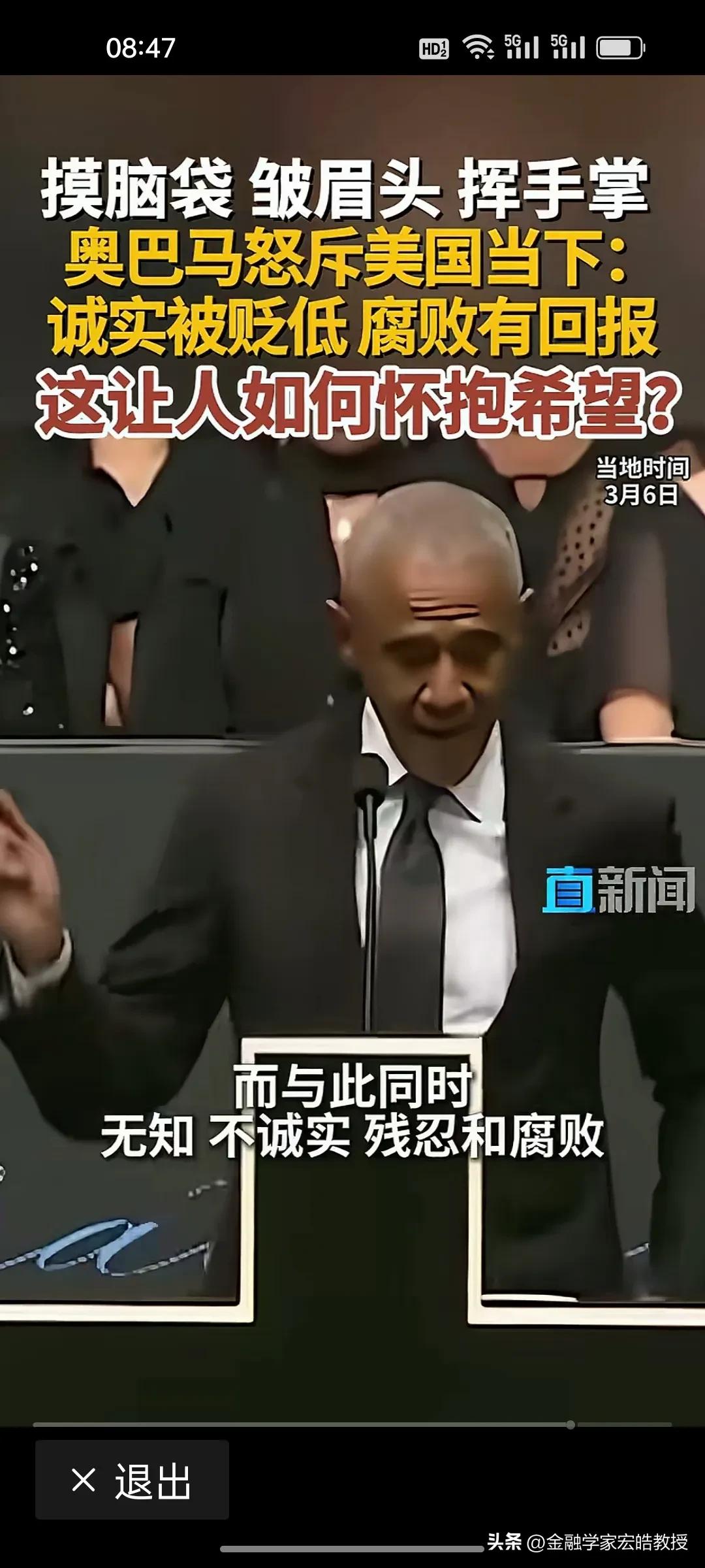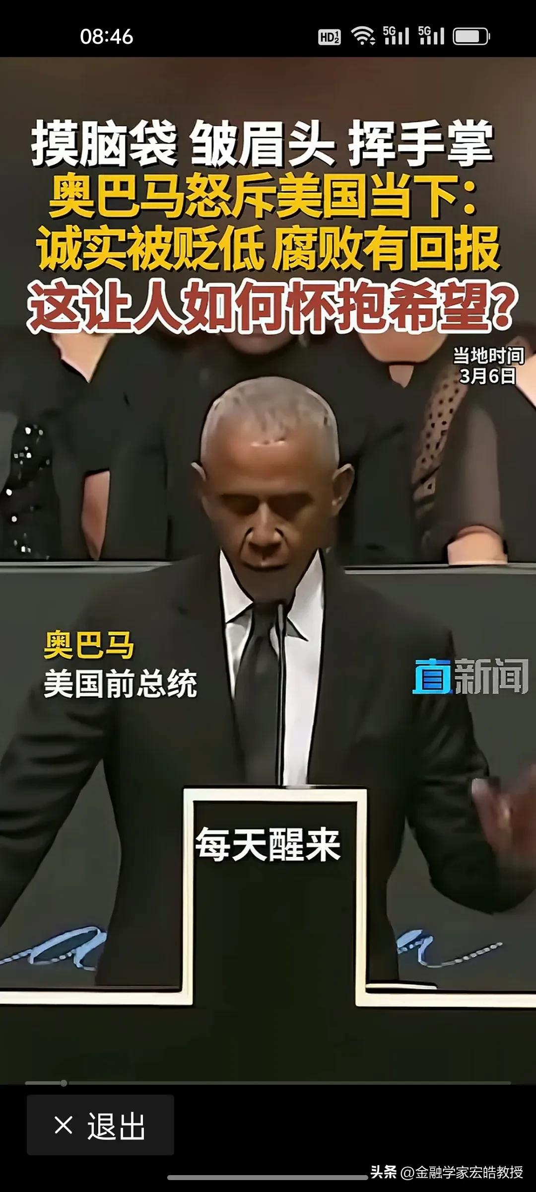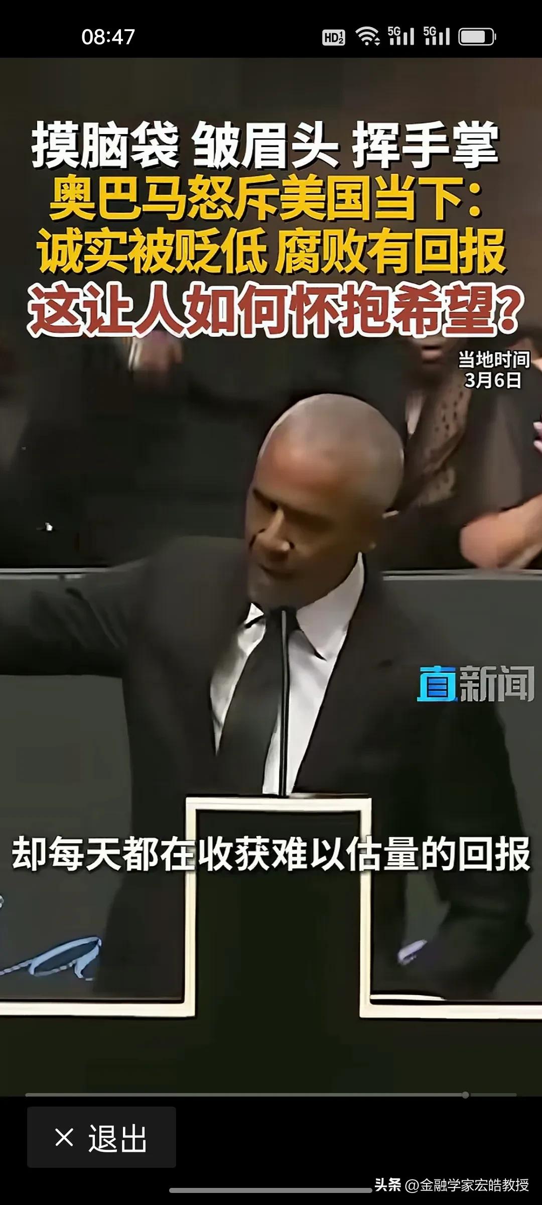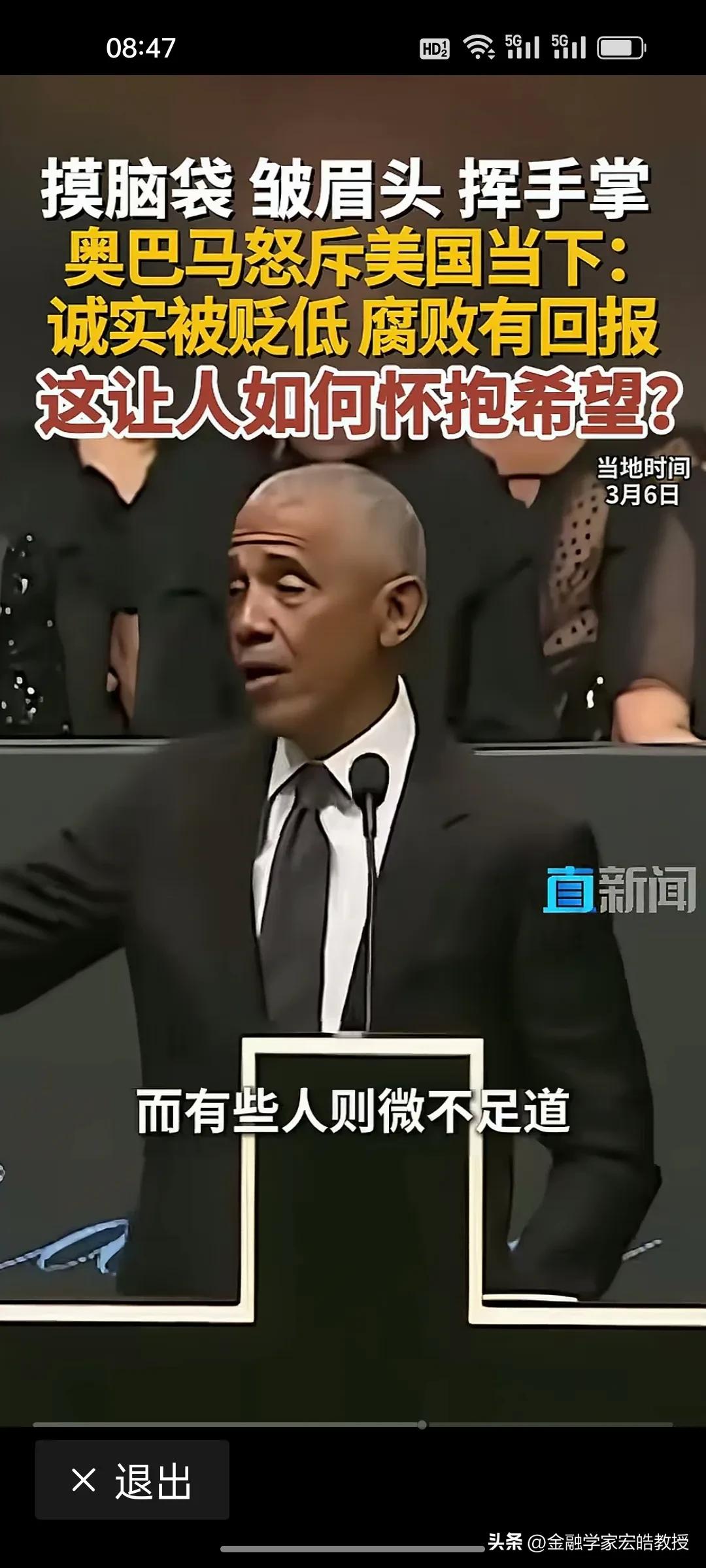 美国前总统奥巴马在昨天演讲中情绪激动,摸着脑袋怒斥当下美国“诚实被贬低,腐败有回报”,直言这是一个“很难让人怀抱希望”的时代。台下掌声雷动,都对奥巴马的这番话表示赞同。 奥巴马在位时于2011年推行“重返亚太”,卸任后却直指美国衰退的根源:民主制度受冲击、法治观念倒退、贪婪偏执被颂扬。这种“在位糊涂,下台清醒”的反差,恰恰戳破了美式民主的虚伪面纱。 特朗普要听到奥巴马的这番话,脸都该气绿了。因为在特朗普说过,对他唯一的约束就是他自己的道德观念。他主导的美国就是一个再次强大的美国。干任何事情都是“大胜特胜”,尽管他已经凭一己之力把美国拖向深渊,可是他依旧穿着“皇帝的新装”,言不惭地说自己“赢麻了”。