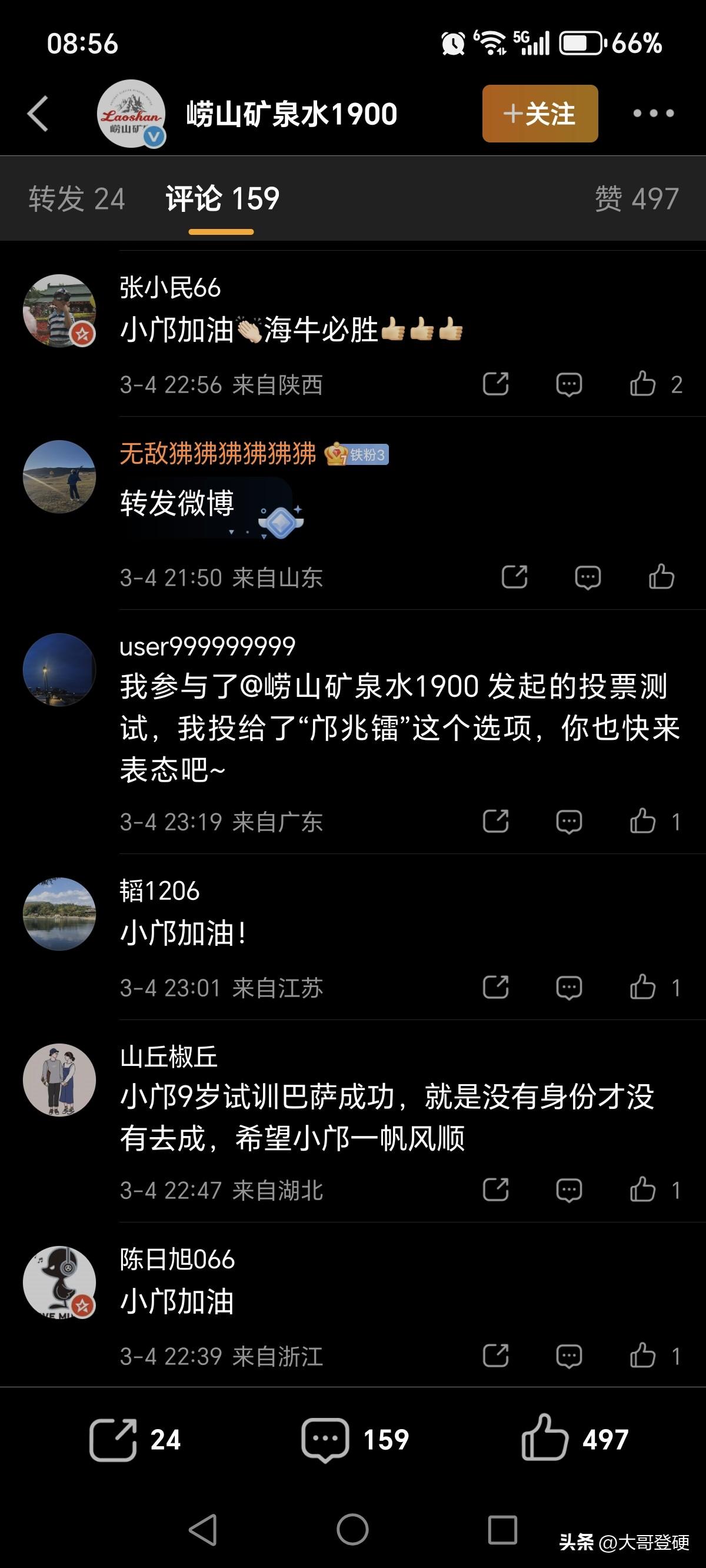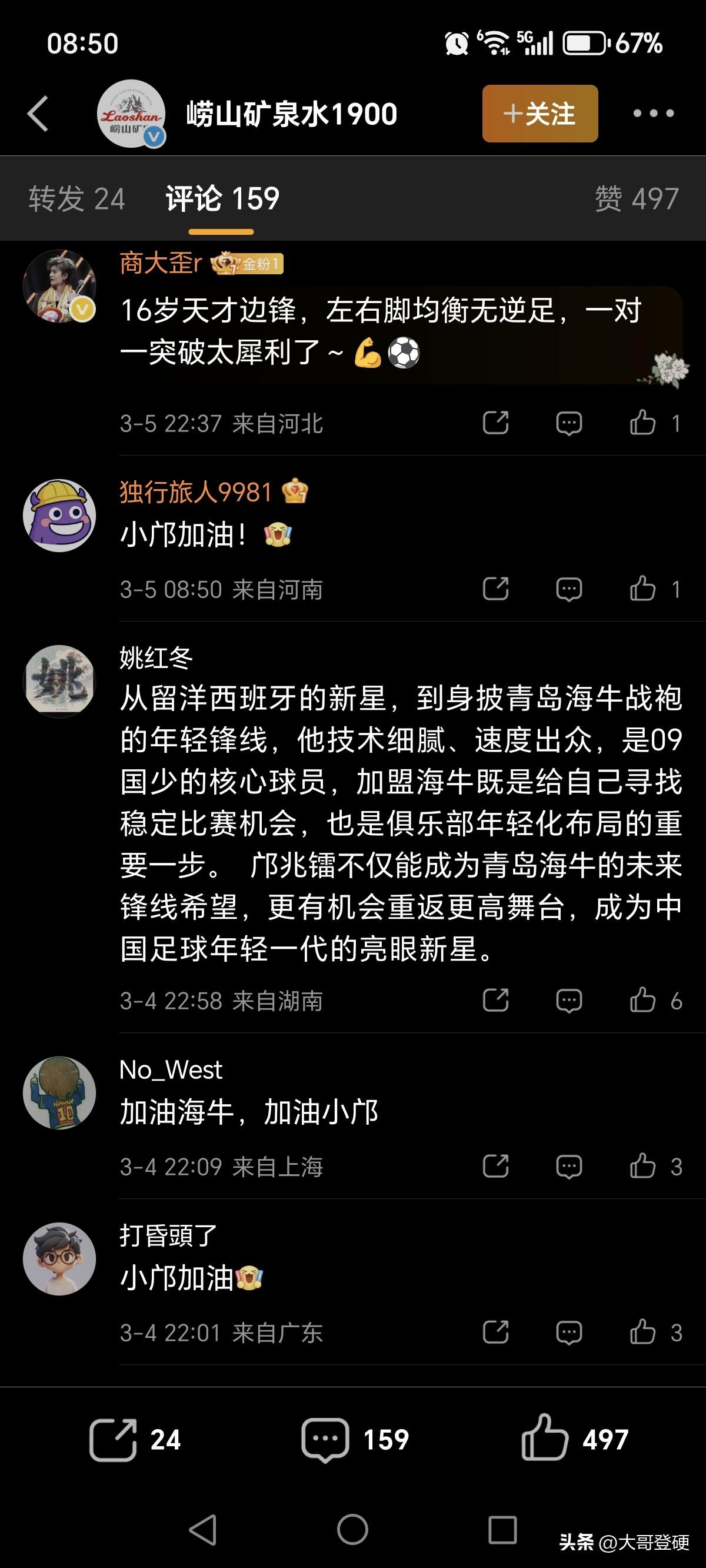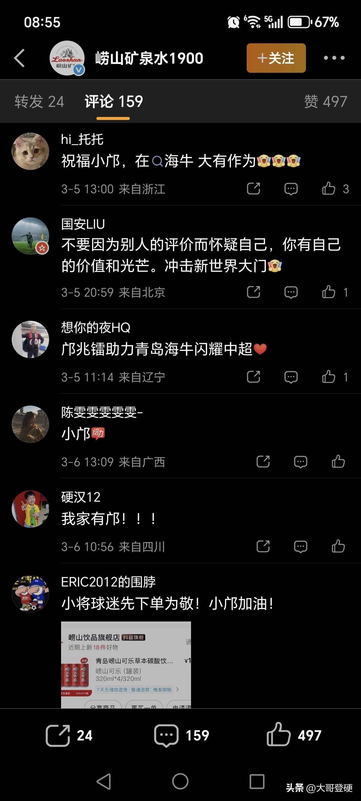 服不服?!足球小将邝兆镭的粉丝,直接“攻陷”了崂山矿泉水的社媒评论区[震惊] 近日,中超青岛海牛队的胸前广告赞助商崂山可乐,在其官方社媒上搞了一个投票,崂山可乐携手青岛海牛,即将推出球星瓶!选出三名谁是你最爱的海牛球星,优先入选球星瓶设计,让全国球迷看看咱青岛的排面…… 出乎意料的是!足球小将和邝兆镭的粉丝,以迅雷不及掩耳盗铃的势头,直接“攻陷”了崂山矿泉水此次活动的评论区[泪奔] 图三、图四、图五这三个短评很经典!感觉一下子就把调子定好了[恐惧] 客观而言,估计这个青岛海牛队胸前赞助商也没想到,人家一个好端端的投票活动,硬生生弄出这样一群乌泱乌泱的[晕] 不得不说,看来不止是邝兆镭可能会降维打击中超。隐隐约约有一种感觉,足球小将的粉丝们,也已经被放出来,可能要降维打击中超了[发怒]