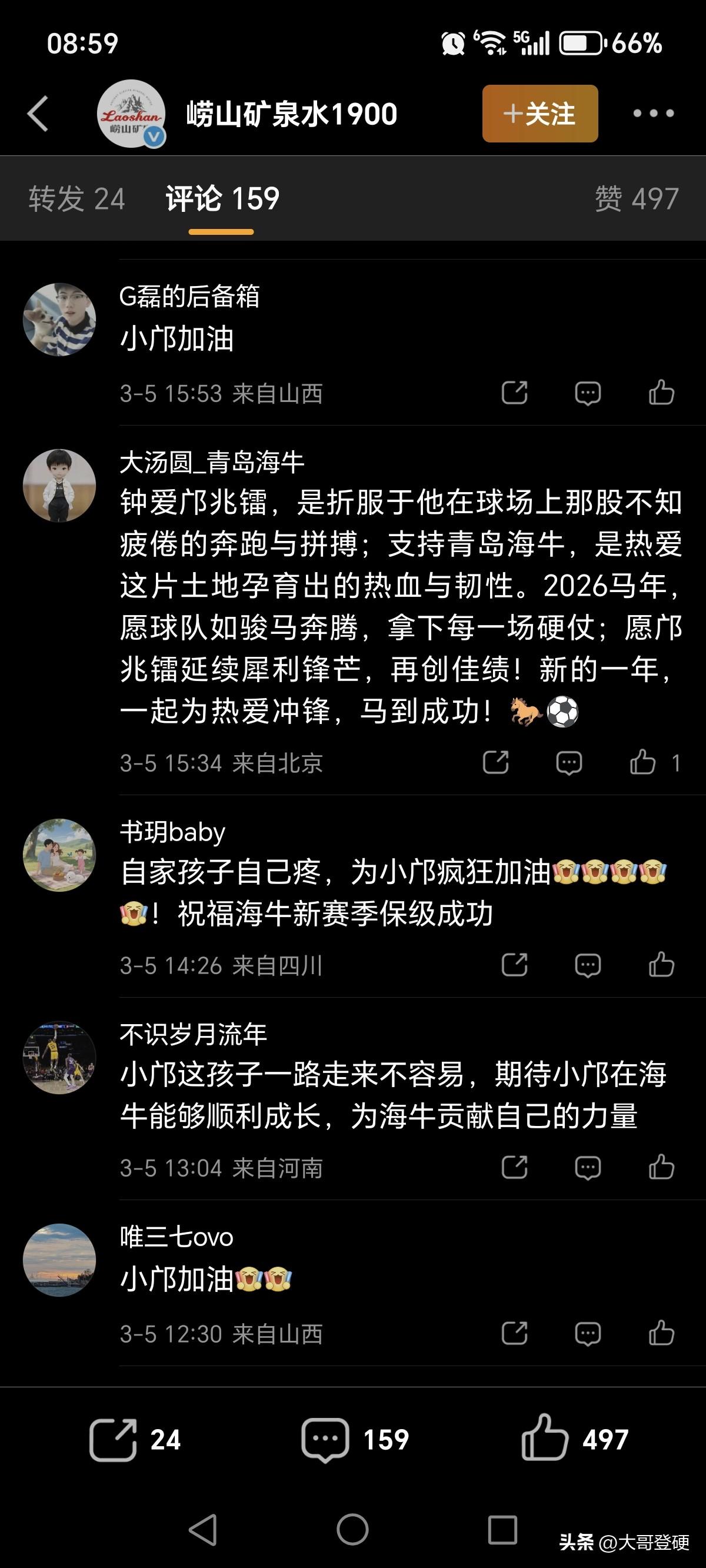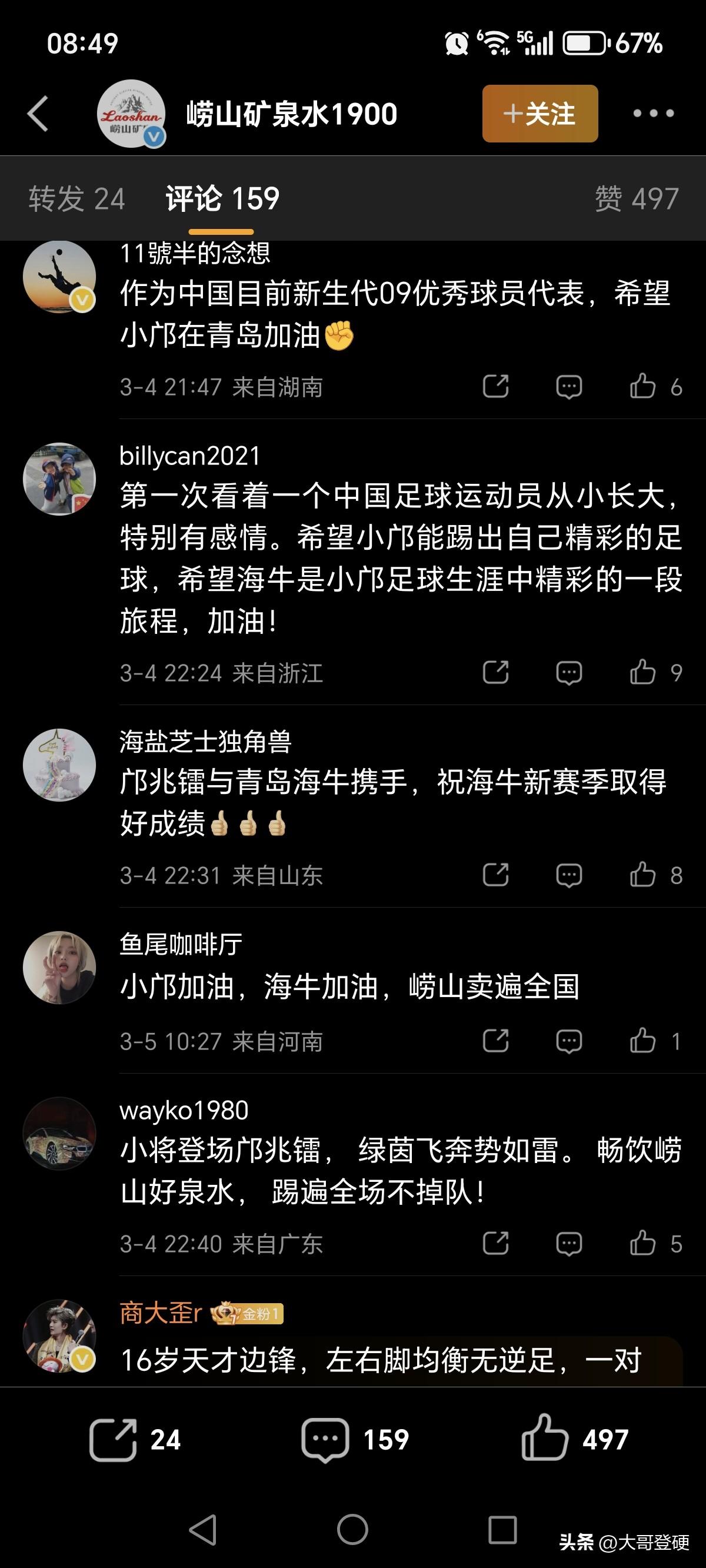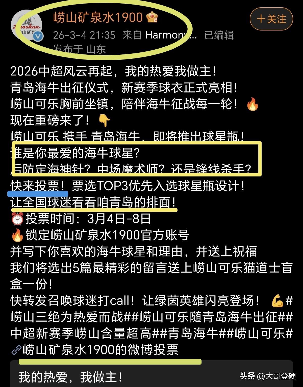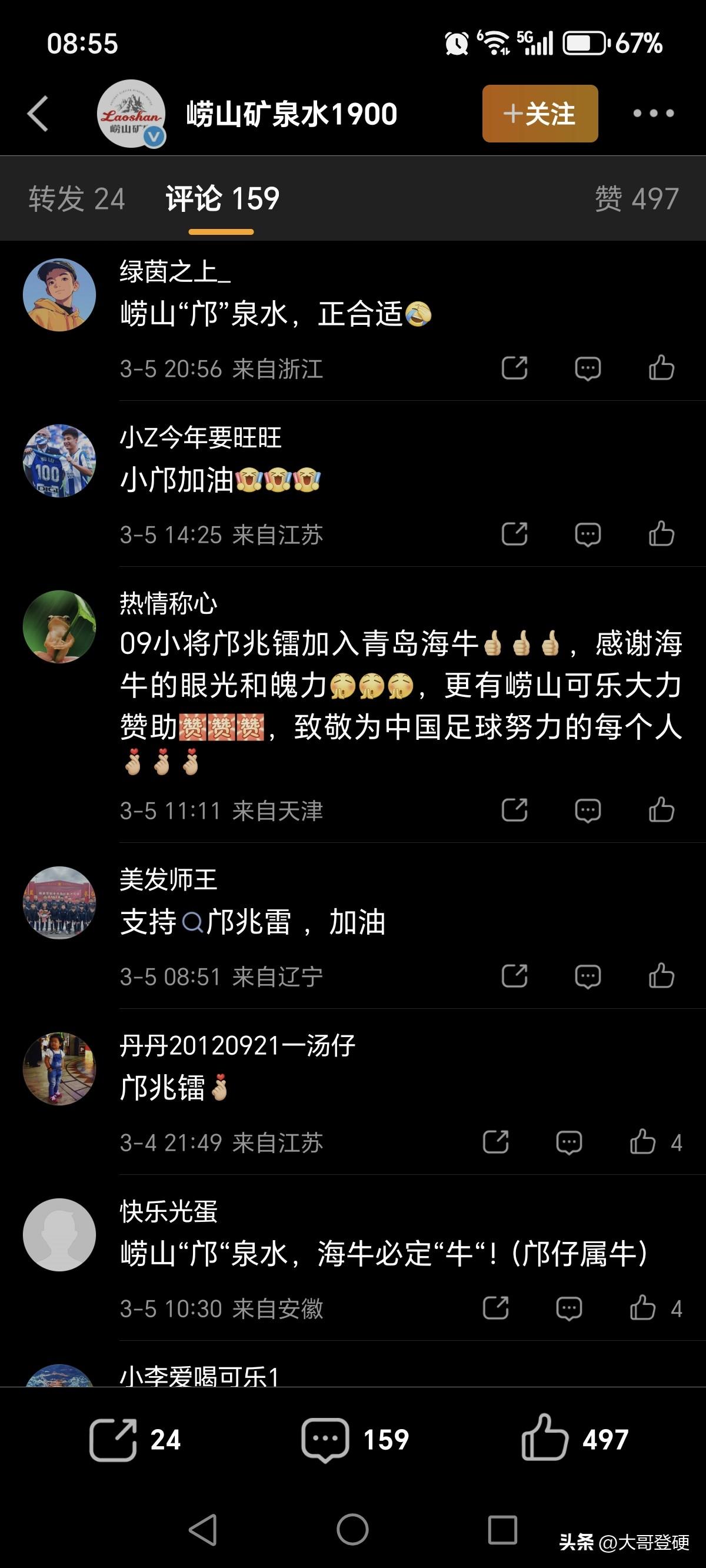 服不服?!足球小将邝兆镭的粉丝,直接“攻陷”了崂山矿泉水的社媒评论区[震惊] 近日,中超青岛海牛队的胸前广告赞助商崂山可乐,在其官方社媒上搞了一个投票,崂山可乐携手青岛海牛,即将推出球星瓶!选出三名谁是你最爱的海牛球星,优先入选球星瓶设计,让全国球迷看看咱青岛的排面…… 出乎意料的是!足球小将和邝兆镭的粉丝,以迅雷不及掩耳盗铃的势头,直接“攻陷”了崂山矿泉水此次活动的评论区[泪奔] 图三、图四、图五这三个短评很经典!感觉一下子就把调子定好了[恐惧] 客观而言,估计这个青岛海牛队胸前赞助商也没想到,人家一个好端端的投票活动,硬生生弄出这样一群乌泱乌泱的[晕] 不得不说,看来不止是邝兆镭可能会降维打击中超。隐隐约约有一种感觉,足球小将的粉丝们,也已经被放出来,可能要降维打击中超了[发怒]