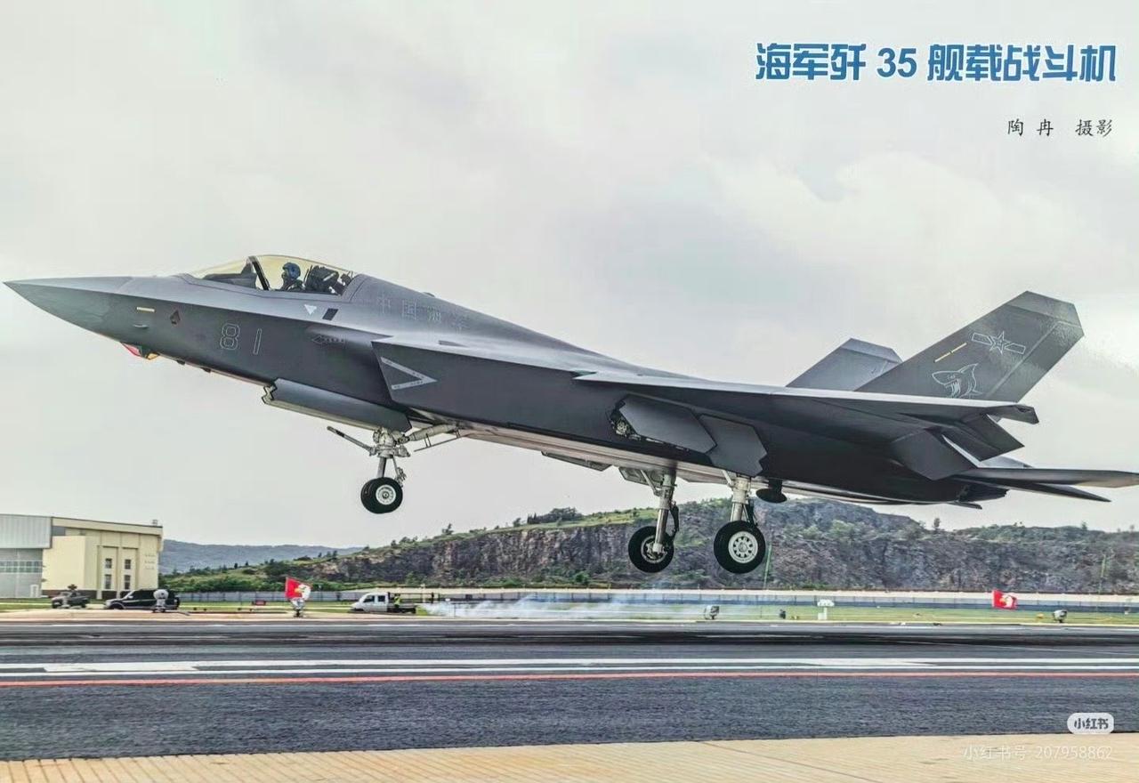 机号3506的歼三五舰载战斗机,被系留固定在福建舰的飞行甲板上,还是一样的无敌颜值,一样的精工细作。有一个细节不知道大家有没有注意,歼三五舰载机在地面或者甲板上停放时,前起落架行程被压的非常低,但是在弹射时明显要高一些,可能类似于F-8和超军旗那样,在弹射起飞时升高来增加攻角提升升力。