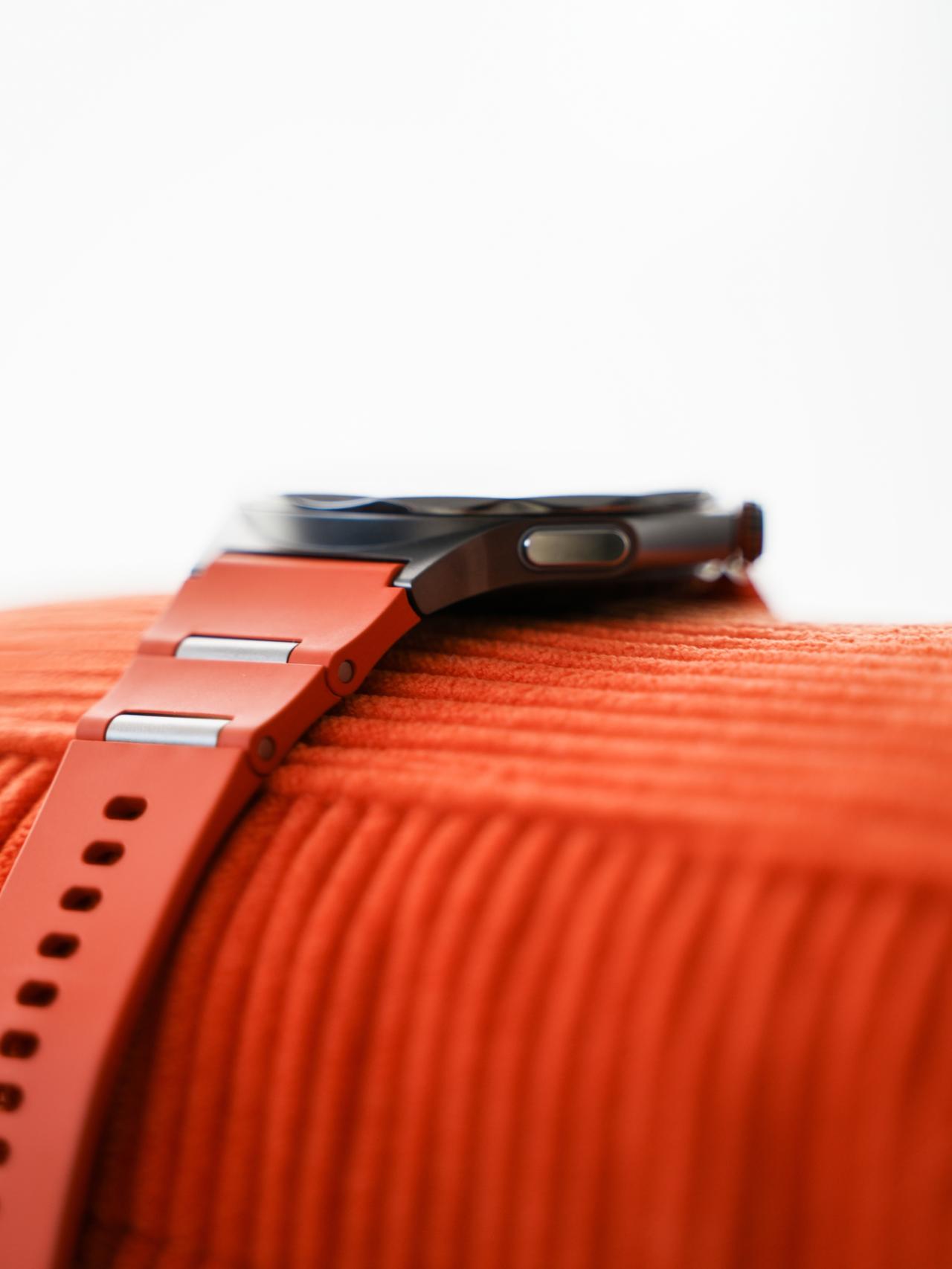HYK图赏|OPPO Watch X3 表壳整个采用的是航天级TC4钛合金材质,更耐刮了。表圈采用的是12边形切割钛合金表圈+柳钉设计,搭配上金属竹节表带,整个看起来很硬朗。表镜采用的是蓝宝石水晶,硬度仅次于钻石,十分耐造。相较于上代,厚度减少了6.5%,重量减少了13.5%,这代可以说有了更年轻的设计,和更好的手感。
