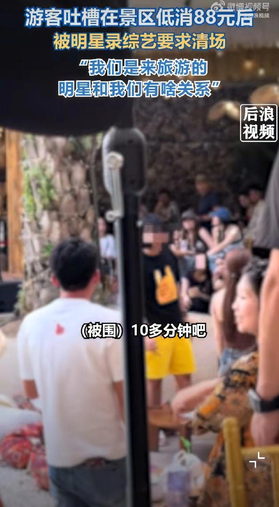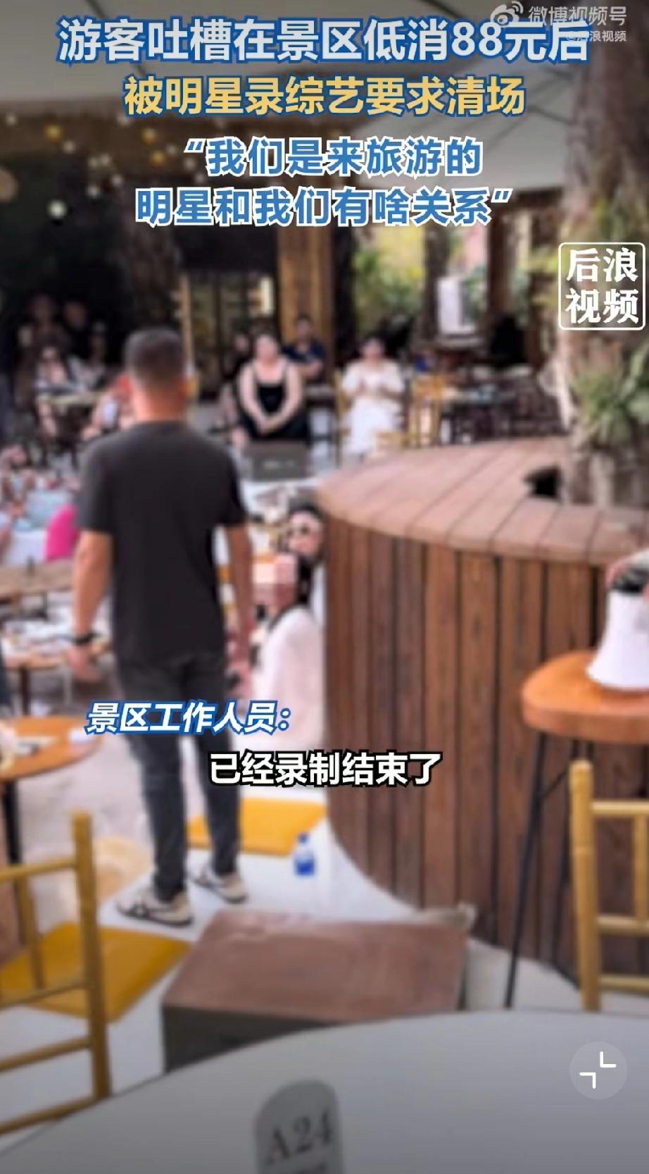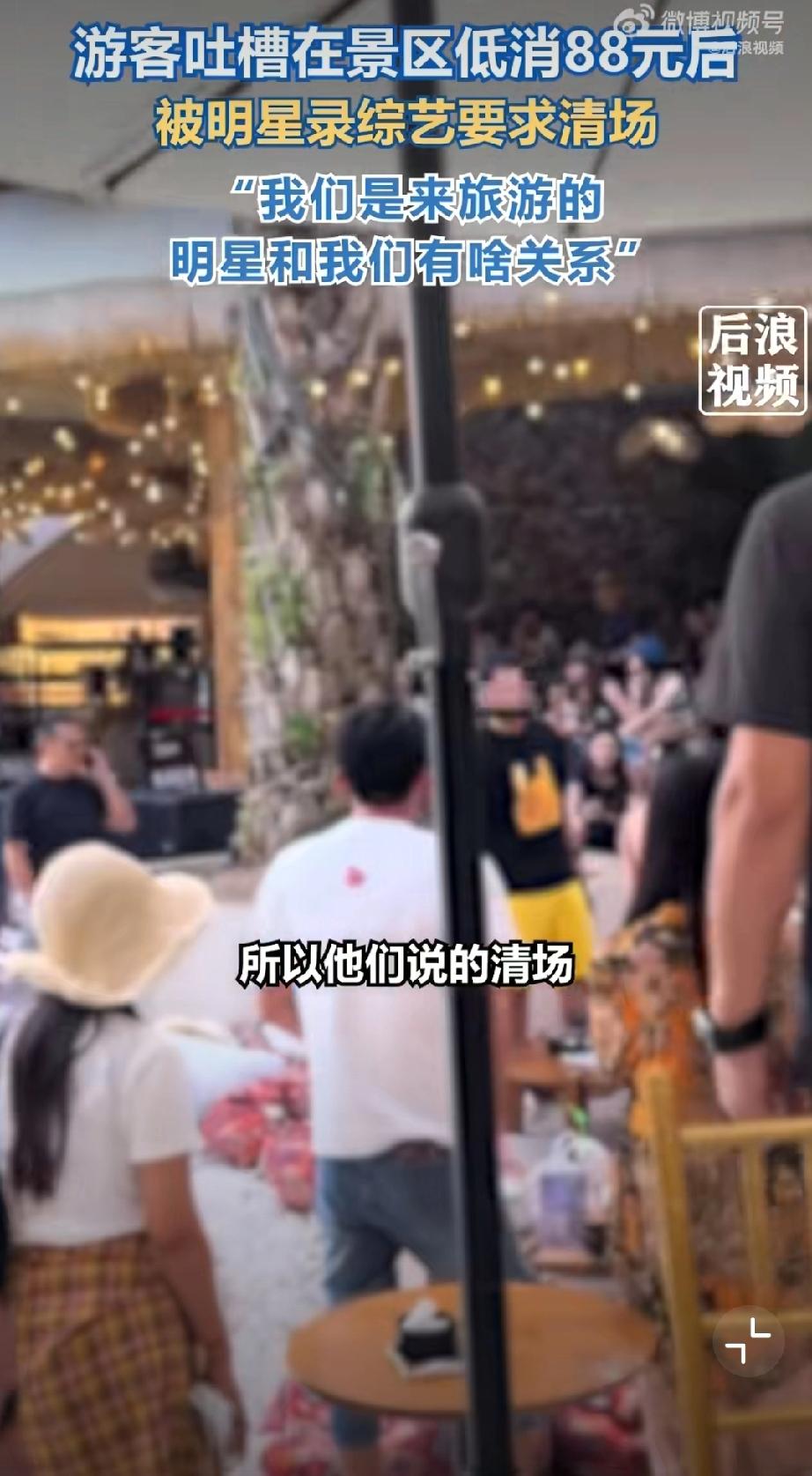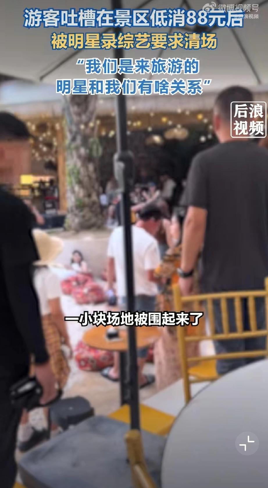 网友吐槽称:飞了3000公里去玩,当天偶遇几个明星录制综艺,要求游客清场~ 是谁给的这么大权利?我是免费进的景区?还是坐着吃东西不给钱?消费都退了你们也没有道理!! 如果你们录制节目需要现场清场,就应该提前让景区告知,此区域营业到几点后需要离开!不知道是节目组要求还是明星要求,那些粉丝远远站着观望都不行,还要求都坐下。在餐厅已经每人抵消88元才可以进,节目组对那些粉丝吆五喝六的态度,真让人反胃!!!明星清场 综艺粉必去 综艺去旅游