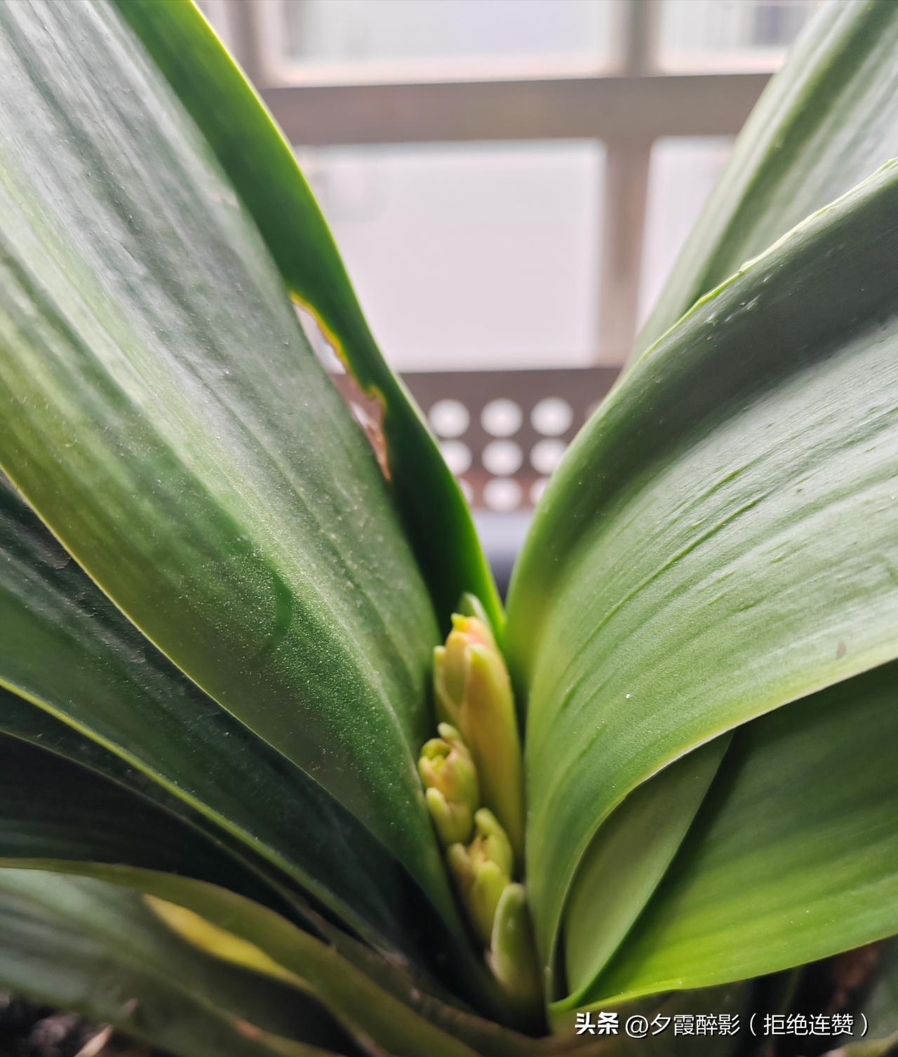 蹲在阳台看了半天,竟被这株君子兰打动了。 记得几天前它还只是藏在叶片间不起眼的小绿点,如今花箭已傲然挺立,顶端的花苞悄悄晕开橙红,像攥紧的小拳头,满是向上生长的力量。 生命的拔节生长,原来就藏在这些不被注意的细碎瞬间里。 守着它,静待花开,便是这春日里最温柔惬意的事。