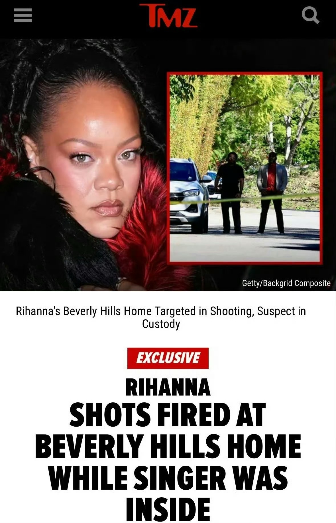 有人跑到蕾哈娜家,用一把AR-15步枪朝蕾哈娜家连开数枪,事发时蕾哈娜正在屋内,