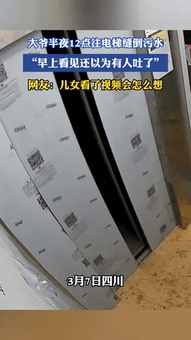 林子大了什么鸟都有!四川广安,一小区监控拍到,一位大爷在半夜提着满满一桶污水走到电梯口,随后将污水直接倒入电梯井后离开,其行径之荒唐,让网友直呼看不懂。 3月7日,四川广安一段小区监控视频在网上引发热议。 视频显示,深夜时分,一位大爷提着满满一桶污水走到电梯口,没有任何犹豫,直接将污水全部倒进电梯井内,随后便拎着空桶转身离开,整个过程一气呵成,丝毫没半点犹豫。 视频曝光后,不少业主和网友都表示十分不解,大家纷纷留言讨论,有人说“完全想不通这位大爷是出于什么心态,好好的污水不往该倒的地方扔,偏偏倒进电梯井”,也有人表示“电梯是公共设施,这么做不仅会损坏设备,还会影响整栋楼居民的出行,太不应该了”。 更有人觉得这位大爷肯定不是第一次了,应该是惯犯,必须要加以严惩。 的确,从监控画面能清晰看到,大爷的行为是故意为之,并非无意之举。 要知道,满满一桶污水直接灌入电梯井,很容易造成电梯电路短路、部件锈蚀,不仅会产生维修费用,还可能引发安全隐患,给小区物业和其他业主带来不必要的麻烦。 目前,相关人员已就大爷的行为进行了报警处理,此事尚无官方公布结果。 我们无从得知大爷此举的真实想法,既不知道他是图一时方便,还是存在其他情绪,但可以确定的是,这种破坏公共设施、影响他人生活的行为,既不合情理,也涉嫌违法。 如果电梯因大爷的行为造成损坏,那么他不仅要全额赔偿电梯维修、清洁等费用,还可能被警方处以罚款、行政拘留等处罚。 如果电梯损失金额较大,大爷甚至要承担刑事责任。 总之,公共环境需要每个人共同维护,无论出于什么原因,大爷的这种行为都是不合适的,必须要为此承担相应的后果。 那么对于这件事,你怎么看呢?欢迎大家在评论区留言。