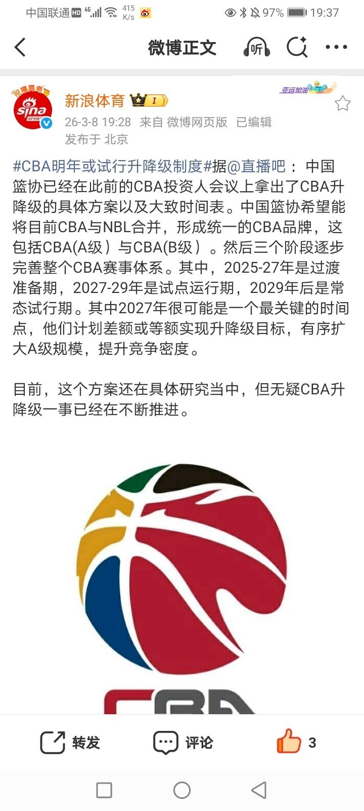 2026年3月9日-2026米兰科尔蒂纳冬残奥会轮椅冰壶混合团体循环赛 (东道主)意大利3-5中国/瑞典-拉脱维亚/斯洛伐克-挪威/加拿大-英国/美国-意大利/加拿大-挪威/中国7-5险胜韩国(卫冕冠军中国轮椅冰壶混合团体队获得三连胜) 混双 英国5-10被中国逆转(中国轮椅冰壶混双队获得六连胜 继续排名积分榜第一)/拉脱维亚-韩国/爱沙尼亚-日本/美国-意大利 2026年中国女篮热身赛武汉站 中国85-51大胜捷克(中国女篮热身赛获得三连胜 唐子婷12分/刘禹彤11分/陈明伶10分) 2026女足亚洲杯小组赛A组第3轮 澳大利亚3-3绝平韩国(双方均终结两连胜 遭遇首平 上届韩国女足凭借进球小分优势获得小组第一/澳大利亚女足获得小组第二)/伊朗0-2菲律宾(菲律宾女足终结两连败 获得首胜 小组第三/伊朗女足遭遇三连负 小组垫底) 2025-2026CBA全明星赛正赛 南区明星队161-147大胜北区明星队(徐杰35分 获得本场MVP) 2026WCBA俱乐部杯决赛阶段半决赛 山西94-58大胜新疆(山西女篮将与四川女篮争夺冠军/新疆女篮将与江苏女篮争夺季军)/江苏59-76四川(四川女篮获得四连胜/江苏女篮终结三连胜) 2025-2026女排超级联赛B级季后赛第二阶段第5轮(第20轮) A组 江苏青年队1-3四川(25-27 18-25 25-22 21-25)(四川女排获得三连胜/江苏青年女排遭遇三连败)/上海青年队0-3深圳(23-25 19-25 16-25)(深圳女排获得七连胜/上海青年女排终结两连胜)/江西3-0山东青年队(25-17 25-15 25-22)(江西女排终结两连败/山东青年女排遭遇九连败) B组 南京师范大学3-1逆转战胜云南(21-25 25-19 25-20 25-20)(南京师范大学女排4胜1负 凭借小分优势 获得小组第一 云南女排终结四连胜 同为4胜1负 获得小组第二)/河北3-1福建青年队(25-23 25-17 21-25 25-20)(河北女排终结两连败/福建青年女排遭遇九连败)/辽宁青年队0-3辽宁(15-25 5-25 13-25)(上届季军辽宁女排获得三连胜 4胜1负 获得小组第三 本场比赛外援休战)(B级季后赛1/4决赛对阵:深圳-河北/上海青年队-辽宁/四川-云南/江西-南京师范大学) 2025-2026男排超级联赛A级季后赛第4轮(第18轮) 福建0-3河北(17-25 22-25 19-25)(升班马福建男排遭遇四连败)/北京1-3天津(21-25 25-15 22-25 20-25)(天津男排获得两连胜/北京男排终结两连胜)/江苏0-3上海(22-25 20-25 19-25)(卫冕冠军上海男排获得七连胜/另一个升班马江苏男排遭遇四连败)/广东2-3惜败山东(16-25 25-18 21-25 25-19 16-18)(山东男排获得两连胜/广东男排遭遇两连败) 2025-2026男排超级联赛B级季后赛第二阶段第5轮(第20轮) A组 上海青年队0-3辽宁(20-25 24-26 23-25)(辽宁男排获得两连胜 4胜1负 小组第一)/中山大学0-3湖北(20-25 21-25 14-25)(中山大学男排遭遇两连败)/四川3-0河北青年队(25-11 25-16 25-17)(四川男排获得四连胜 同样4胜1负 小分劣势 小组第二/河北青年男排遭遇十连败) B组 福建青年队0-3浙江(15-25 18-25 12-25)(浙江男排获得三连胜)/南昌大学0-3云南(36-38 13-25 22-25)(云南男排获得五连胜/南昌大学男排遭遇两连败)/河南3-0广东青年队(25-13 25-5 25-23)(河南男排终结两连败/广东青年男排遭遇五连败) (B级季后赛1/4决赛对阵:辽宁-南昌大学/四川-河南/湖北-浙江/中山大学-云南) 2026中超联赛首轮 浙江俱乐部2-0青岛西海岸/武汉三镇0-2北京国安 部分重点赛事预告:CCTV5直播:16:50 2026女足亚洲杯小组赛B组第3轮 朝鲜-中国 CCTV5+直播:17:00 2026米兰.科尔蒂纳冬残奥会冰球小组赛A组 中国-意大利 21:30 2026米兰.科尔蒂纳冬残奥会轮椅冰壶混双循环赛 美国-中国 CCTV5客户端直播:其他:17:00 2026女足亚洲杯小组赛B组第3轮 孟加拉国-乌兹别克斯坦 17:00/19:30 2026WCBA俱乐部杯决赛阶段3 4名决赛 新疆-江苏/冠亚军决赛 山西-四川 16:35 2026米兰.科尔蒂纳冬残奥会轮椅冰壶混双循环赛 韩国-英国/瑞典-美国/加拿大-拉脱维亚/斯洛伐克-意大利 21:35 拉脱维亚-日本/意大利-英国/韩国-爱沙尼亚