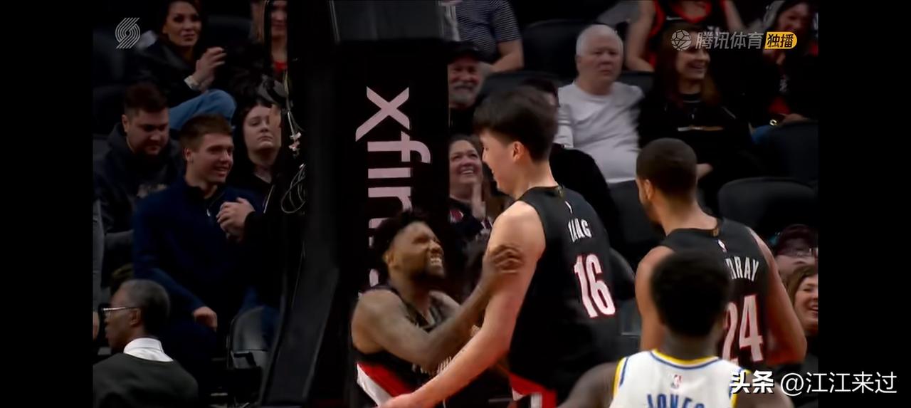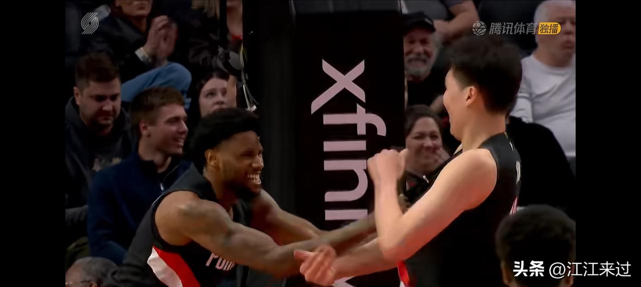 开拓者131比111大胜步行者!杨翰森打高兴了,上场4分钟砍下5分1篮板的数据,防守也没漏,都到位了,杨翰森此前打的不好,包括罚球也不进,是因为有背伤,今天杨翰森抓住有限的登场机会,稳稳的三罚全中! 杨翰森上场先来个接球上篮被吹提前犯规,两罚稳稳命中!杨瀚森暴扣进球,韦斯利高兴的不得了,韦斯利突破为杨翰森做饼,杨翰森暴扣打进2+1!