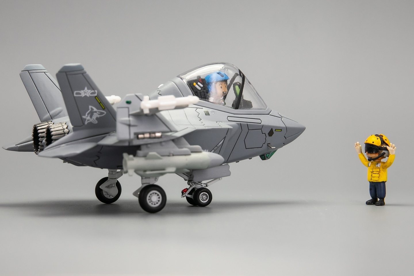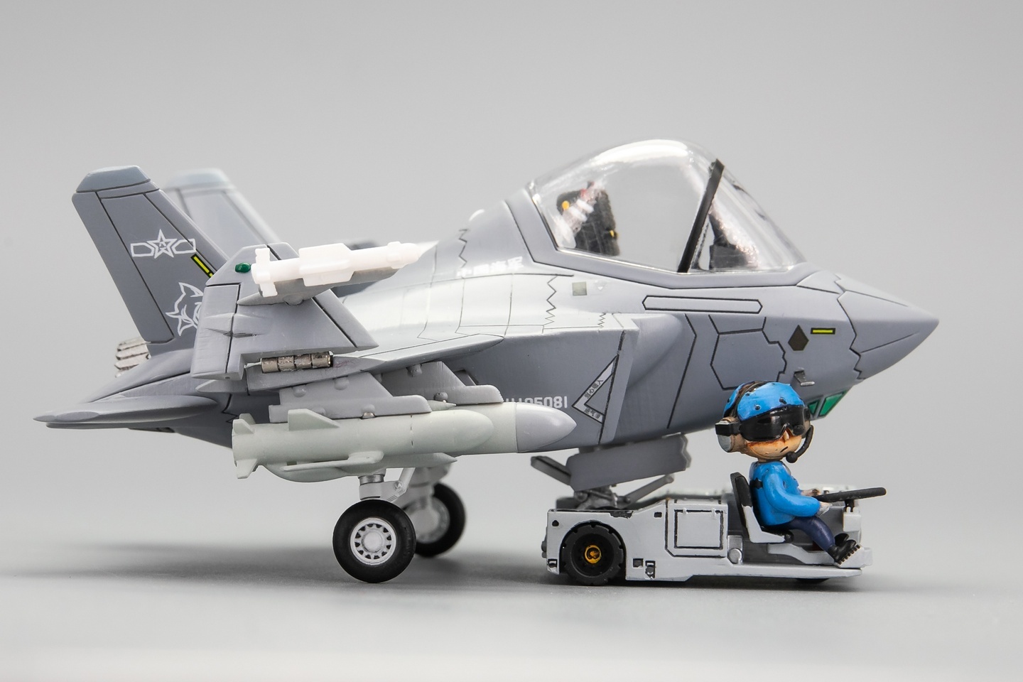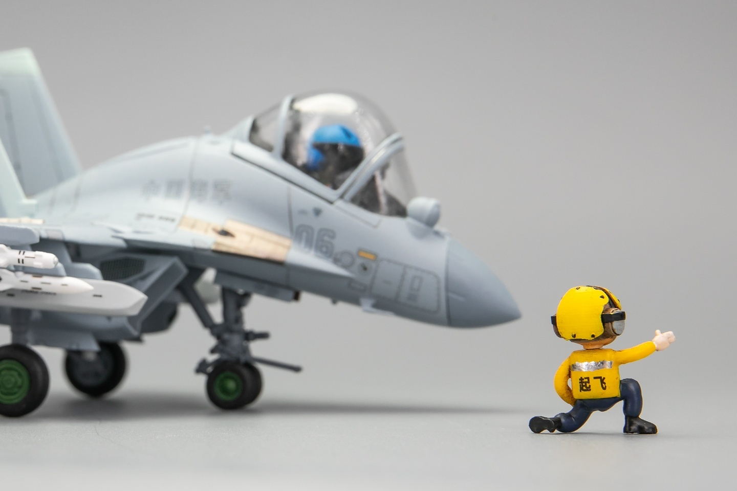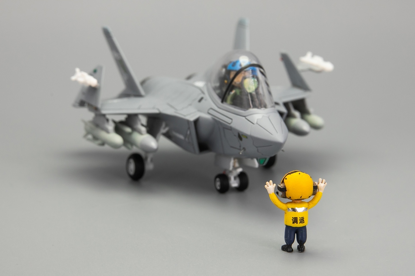 初步攒了一套中国航母地勤装备与人员。设备包括:飞机牵引车、挂弹车、弹射控制站。人员包括:弹射指挥员2款、调运员、车辆驾驶员。 Q版飞机模型