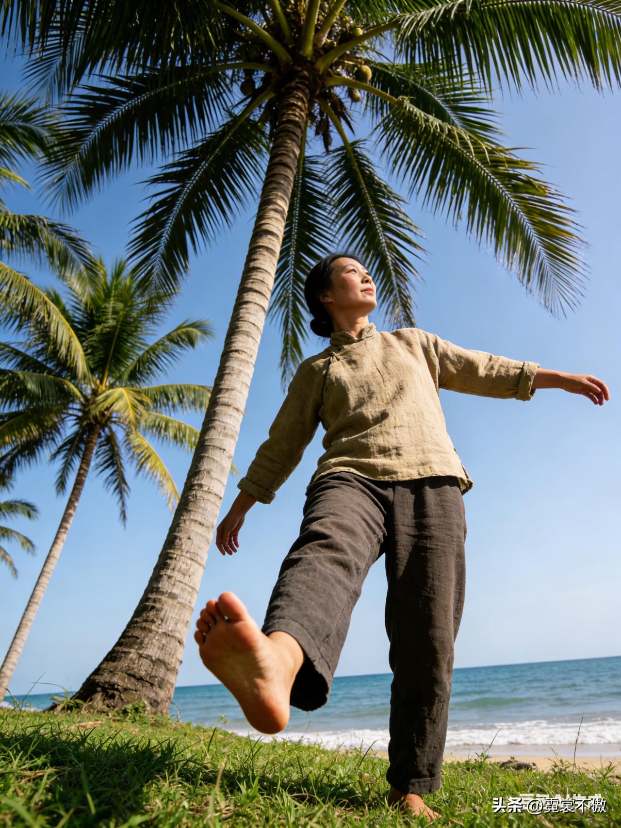 有一天,我们在椰子树下散步,我无所顾忌地脱掉皮鞋。压抑和焦虑随脚上的湿气一起蒸发,脚趾尽情张开,敏感的脚心接触到草地、路面、土壤的不同质感,一种久违的舒适袭遍全身,与穿鞋受憋相比,截然两种不同感受。我似乎又回到童年,脱去了世俗的种种羁绊,成了一个脚踏实地的人。