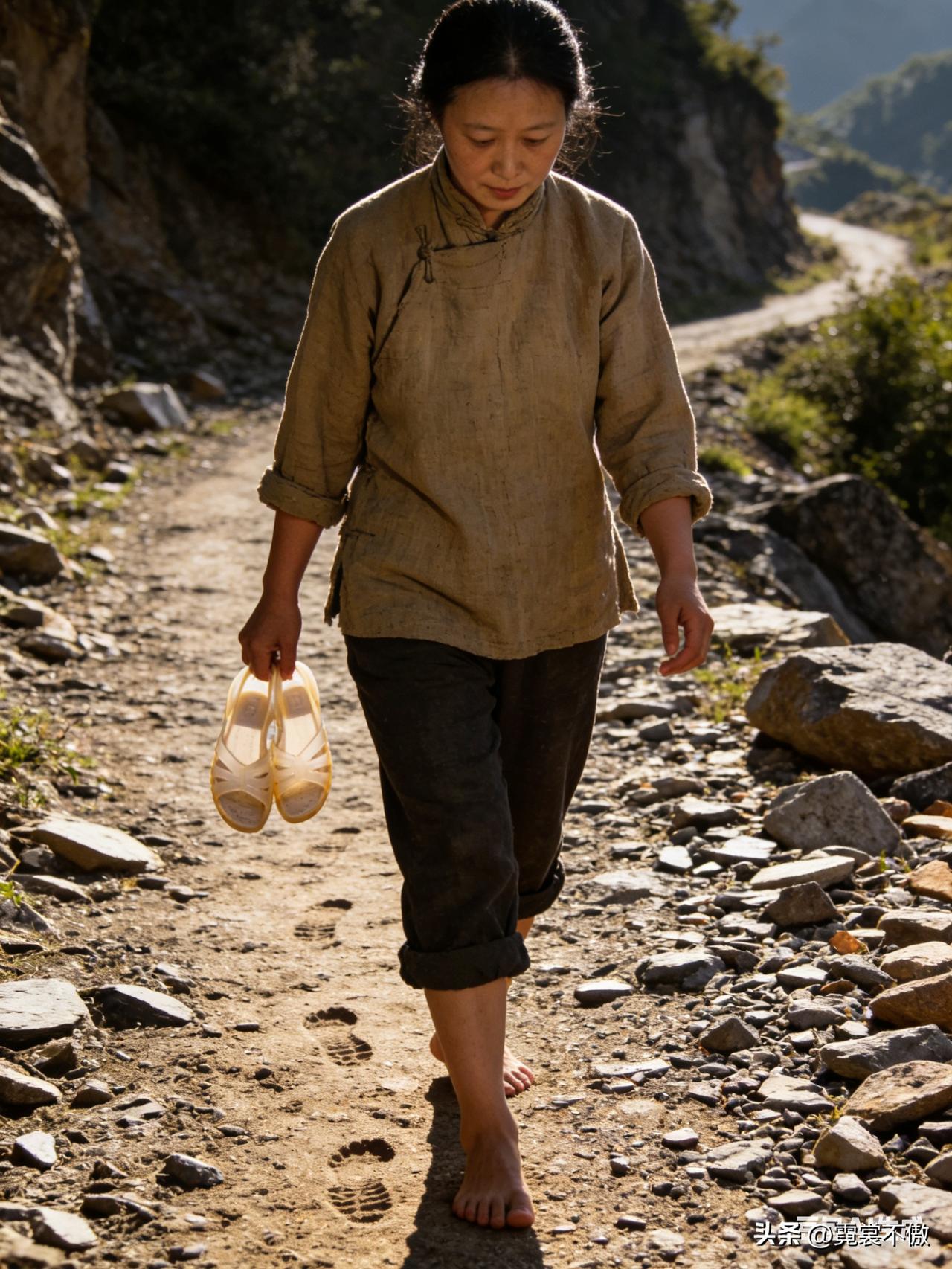 我光脚走过了少年时代,赤脚走进了广阔天地。从小练就的功夫在这里有了用武之地。赤脚上山砍柴,赤脚下田薅草栽秧,赤脚在刺蓬中打猪草挖药材。竹林里、树丛里、岩峰上、田坎上,哪里不留下一串串五个趾头的足迹!那时有一双黑色平底塑料凉鞋,是利用歇息时间挖药材去卖,攒了几个月才买的。平时舍不得穿,只有在逢场赶集时穿一下。落户的山寨离集市有几十里山路,路上的石子十分硌脚,当地贫下中农都穿橡胶皮草鞋赶场。只有我,手里提着一双凉鞋走路。沿途的人几乎都认识我这个提鞋的下放知青,戏称我为“赤脚大仙”。