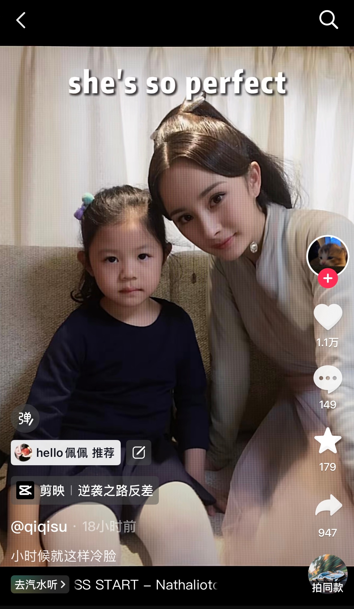 杨幂 抖上一个达人晒出自己小时候和杨幂在拍三生三世十里桃花时候的合影,并配文:“She‘s so perfect”,好萌啊没见过的!!而且她白浅和素素造型齐全了,羡慕!等我小了我也要和杨幂合影