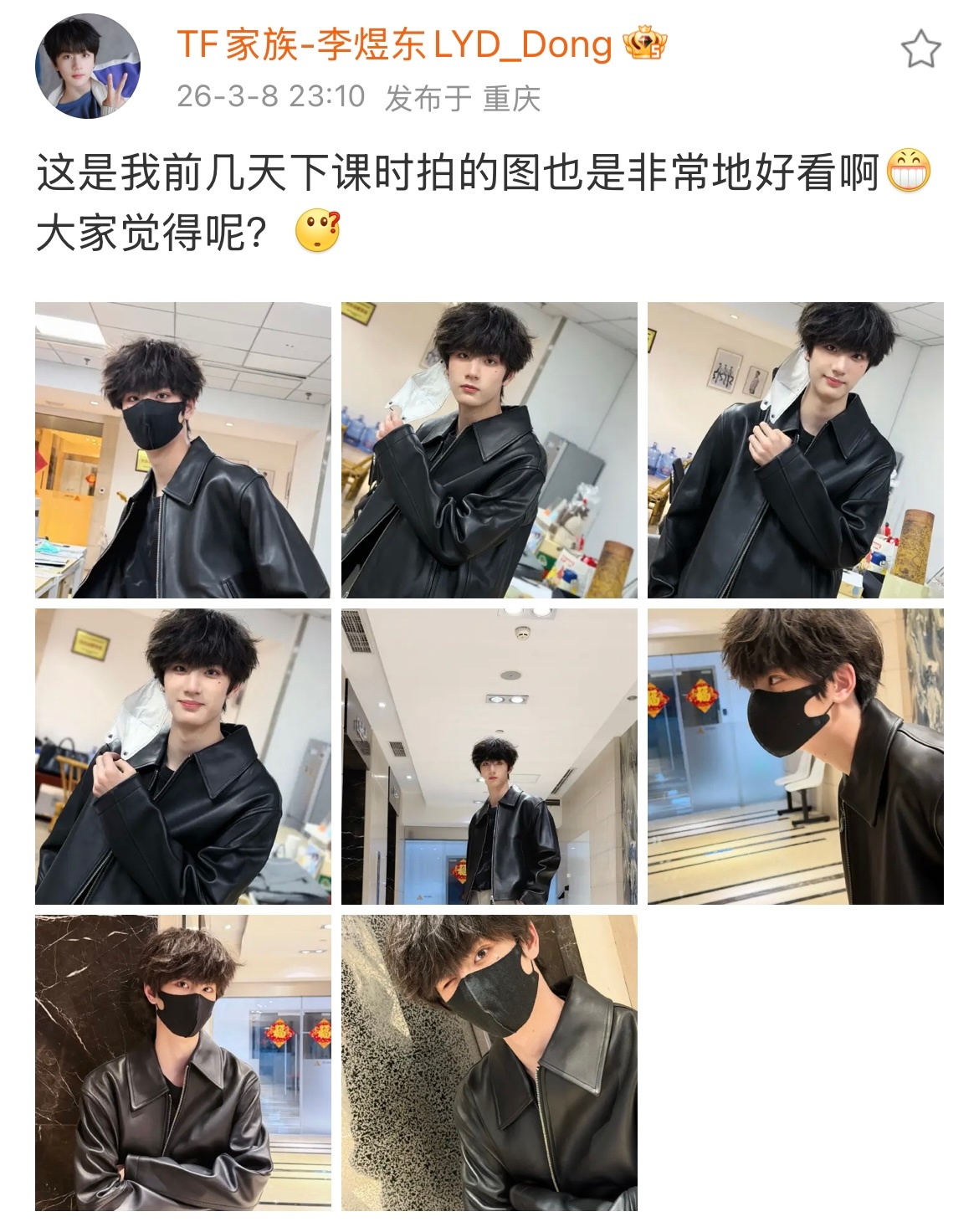 李煜东皮衣造型 李煜东黑色皮衣下课随拍口罩也挡不住的优越骨相,痞帅学长感!每一张都像画报男主~李煜东穿皮衣了 李煜东皮衣