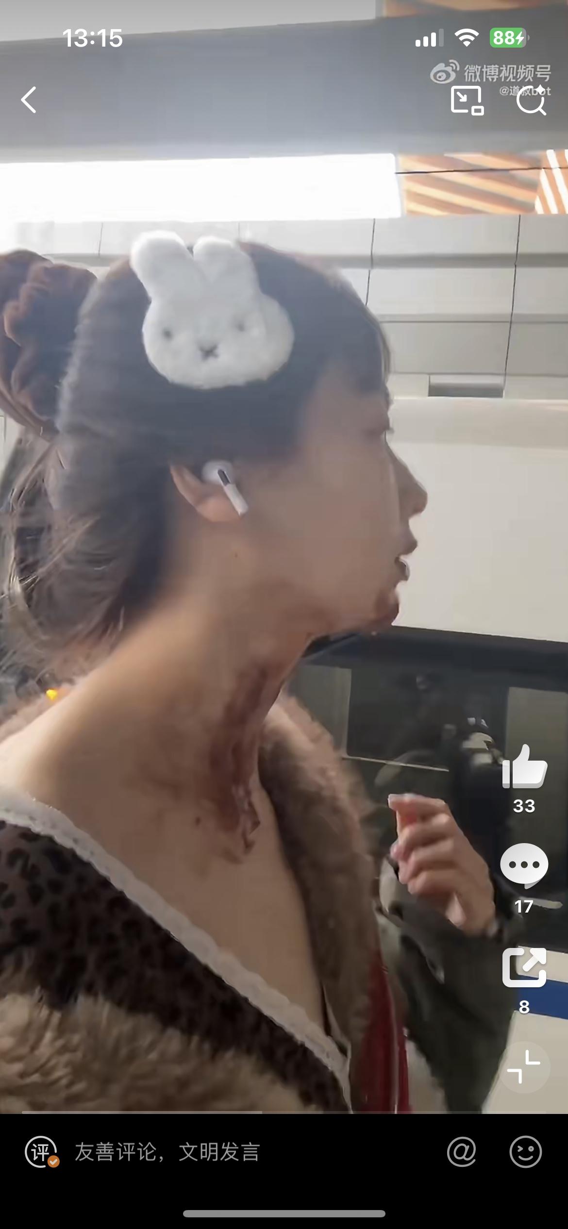 尴尬了,演员王添羽生日表演喷火被烧伤,差点毁容。看她拍的视频,一手端着生日蛋糕,嘴巴咬开一瓶白酒,猛灌一口,嘴对着蜡烛猛吹一口,熊熊的大火,非常的灿烂,但是很快就烧到了自己的嘴巴,这真的是引火烧身,搞砸了。喷火表演可是专业的活,一般人千万不要尝试,并且喷火表演一般不会用易燃的酒精。王添艺马尾杀
