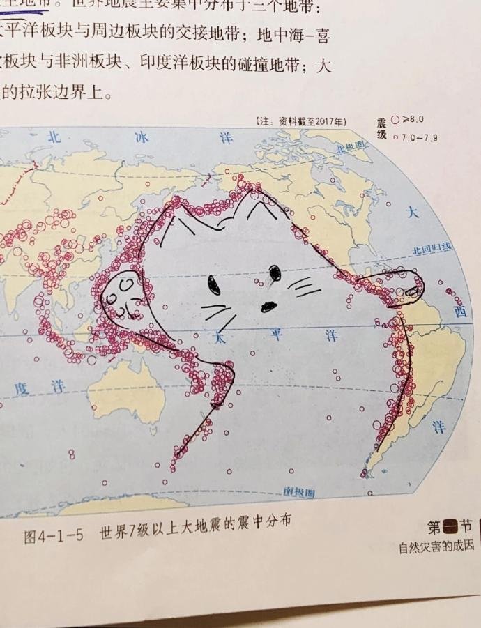 在地理书上发现隐藏猫猫
