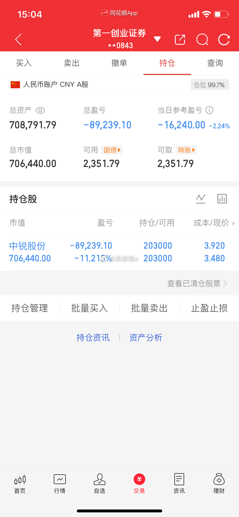 目前持有:中锐股*特别声明:本文仅是个人观点及操作不构成投资建议,仅供参考!