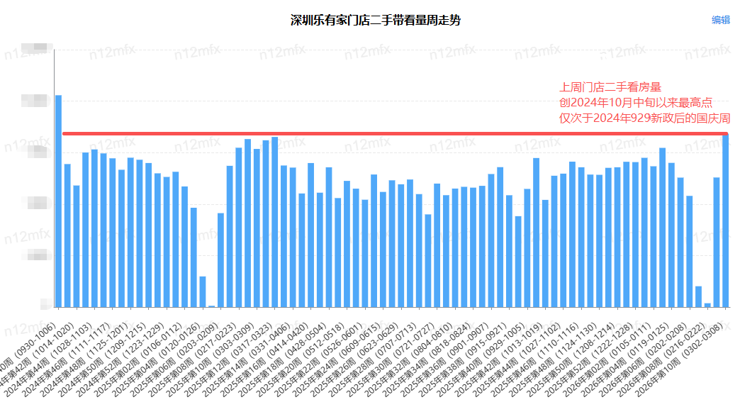 根据乐有家研究中心最新公布的数据,上周(03.02-03.08)深圳乐有家门店的二手签约量环比上涨了132%,直接创下了2025年3月底以来的最高值。