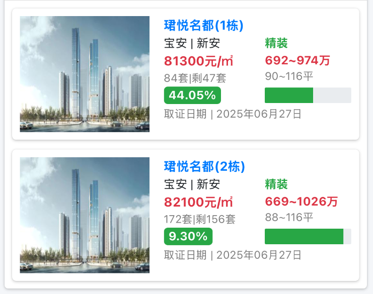 位于宝安新安片区的珺悦名都,主力户型89平方米的三房,直接以工抵房的名义推出大幅特惠,开盘价直降80万—115万元,部分低楼层总价甚至只要500万元出头。