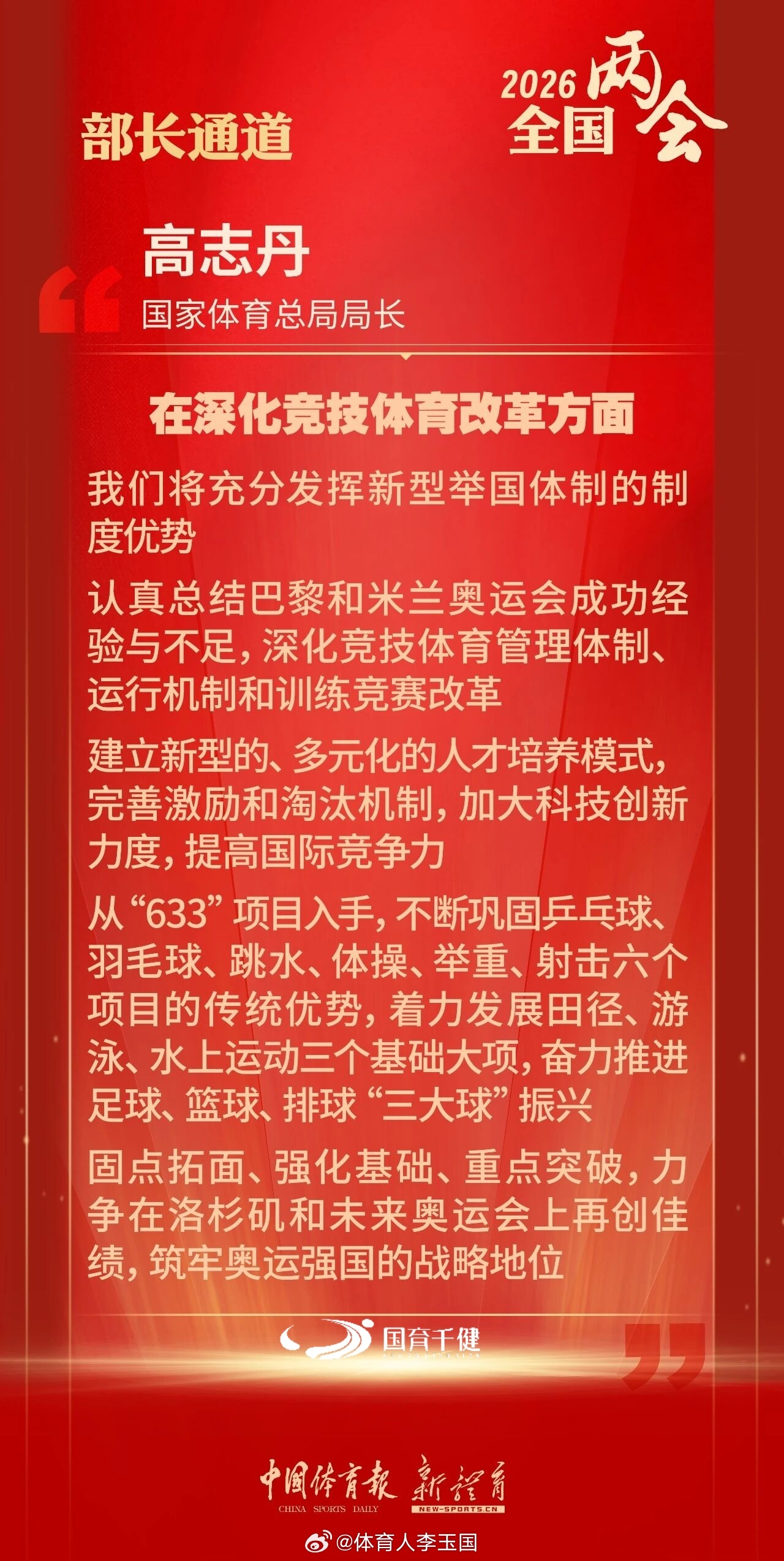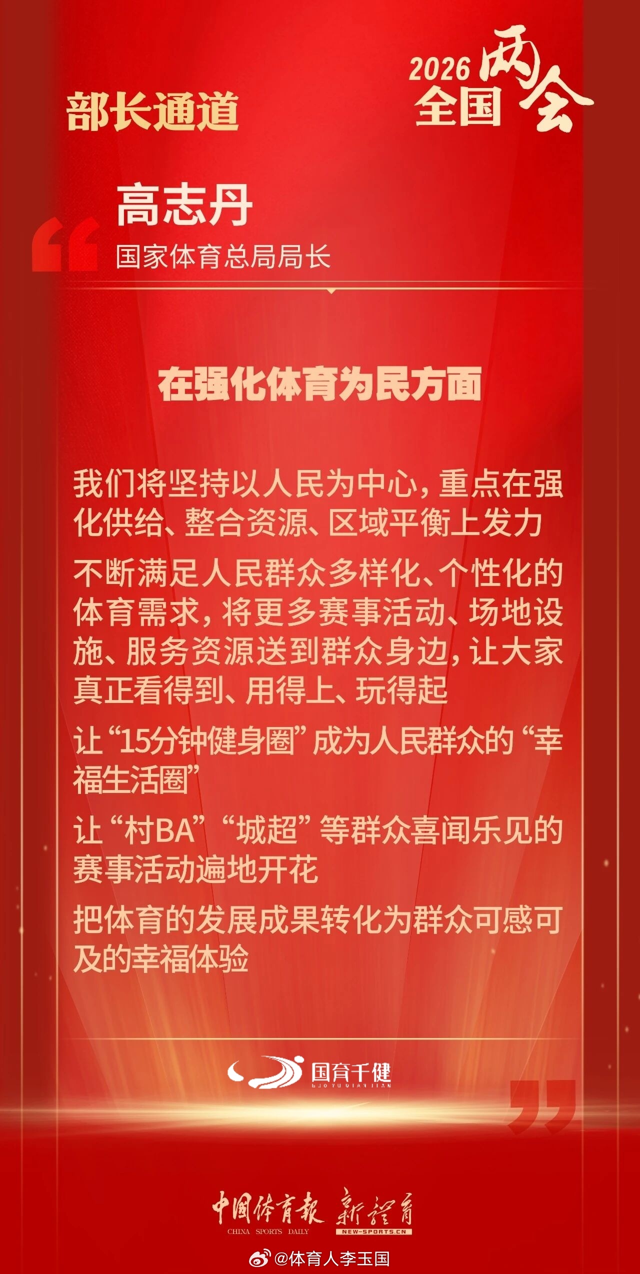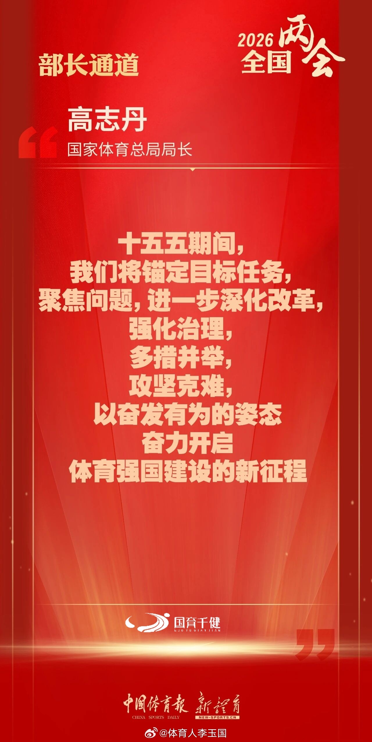 国家体育总局局长高志丹在“部长通道”回应社会关切 锚定体育强国目标 书写“十五五”体育发展新篇章2026两会首场部长通道十五五主要目标两会 北京
