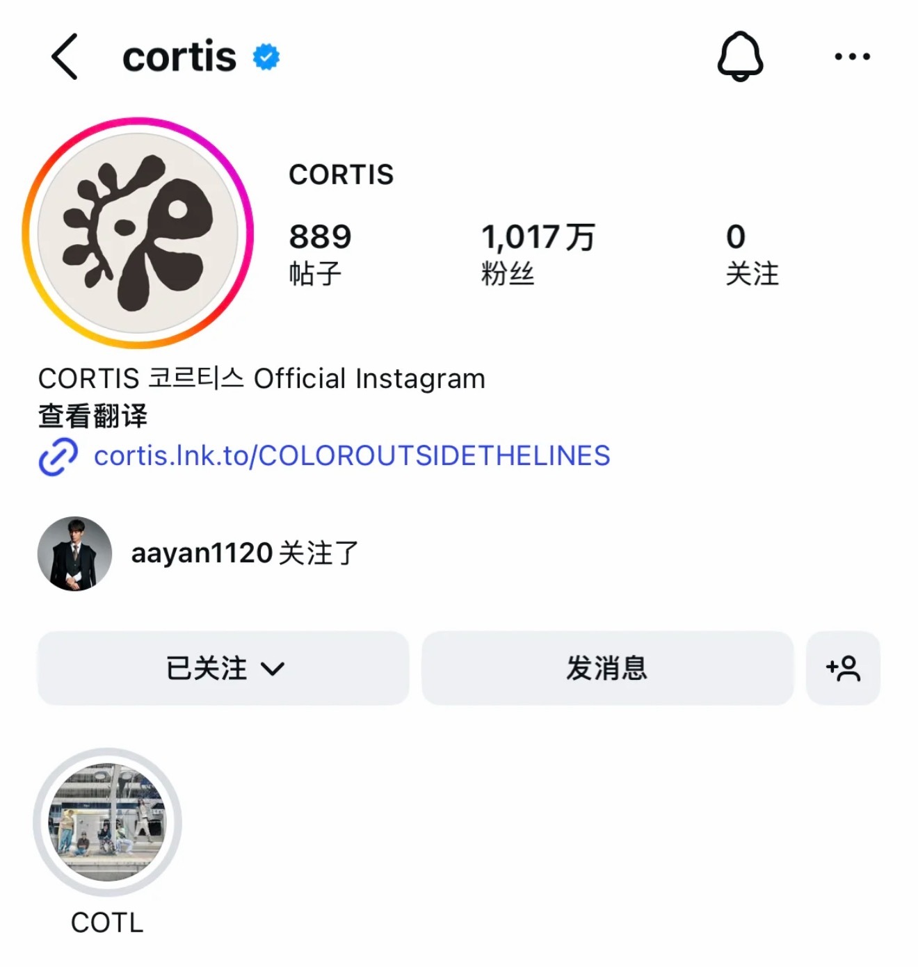 炎亚纶关注了 CORTIS 这是爱上金主训了吗?