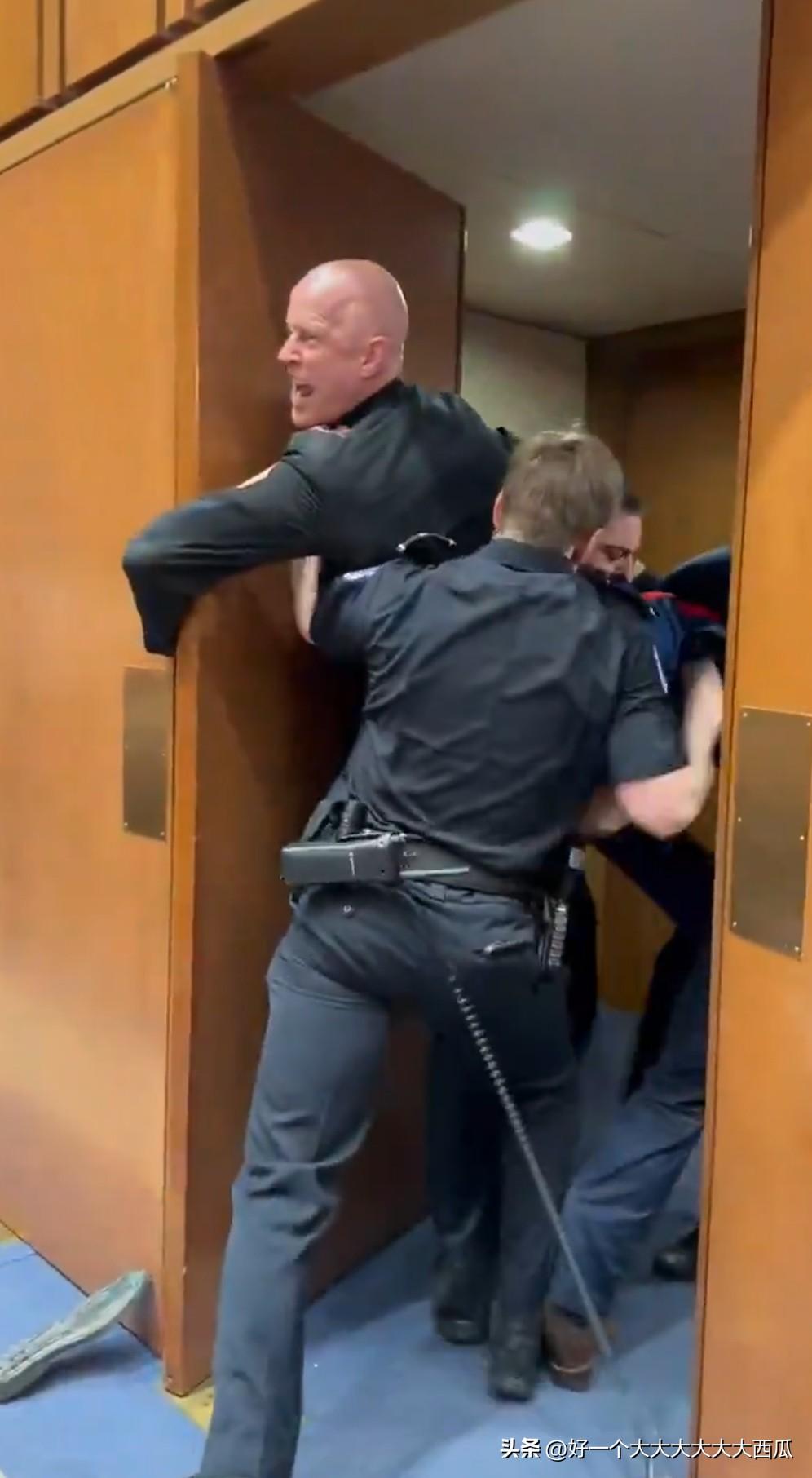 美国海军陆战队老兵因为一句“没人愿意为以色列而战”, 最终被强行驱离会场并弄断了手臂。 但是这件事情最可怕的是图一表现出的那一幕! 一众穿着美国军服的军官们, 在遇到这样突如其来的状况时, 每个人都冷漠得甚至没有转头, 因为他们内心知道一旦转头并对这名士兵表示赞同的话, 他们可能也会丢掉自己的工作和地位。 因为在不能反对以色列这个政治正确面前, 哪怕是错误的事情他们也必须去执行, 这才是美国最悲哀的地方。