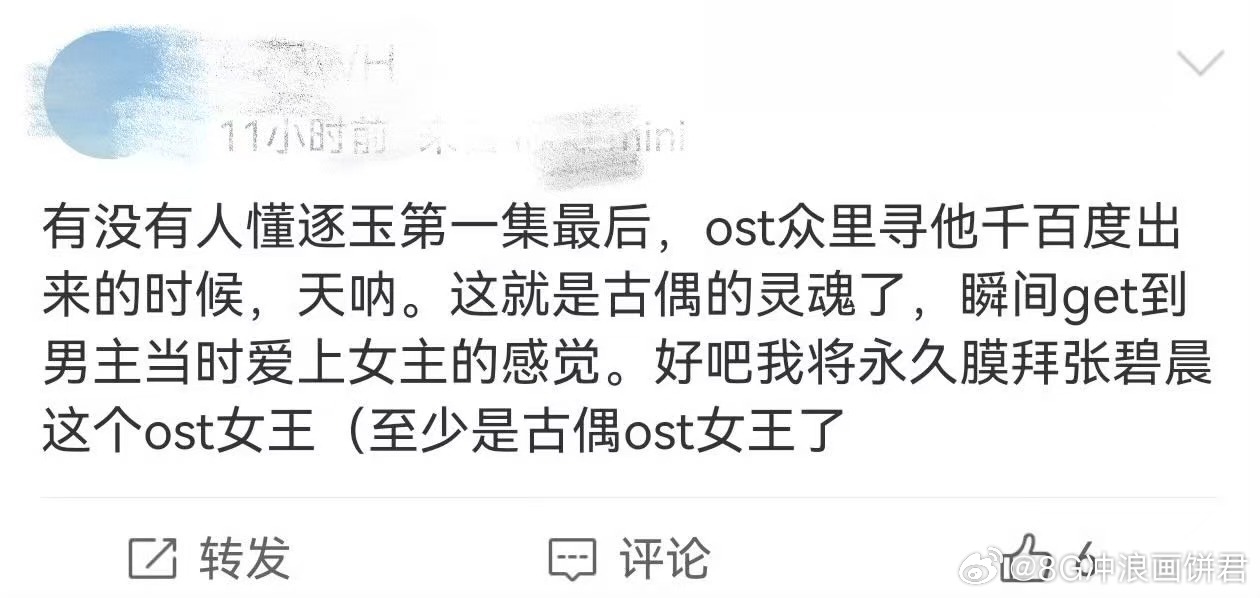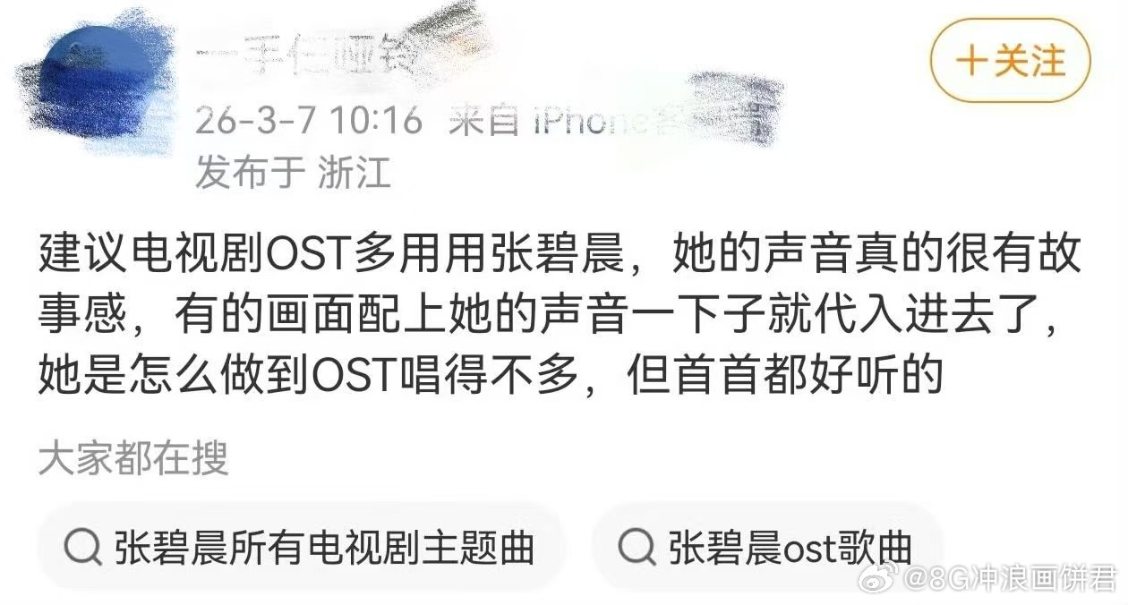 张碧晨逐玉OST大受好评 网友诚不欺我!张碧晨的嗓音和谢征的适配度简直是绝配。旋律一响,氛围感就出来了,这就是OST女王的含金量。