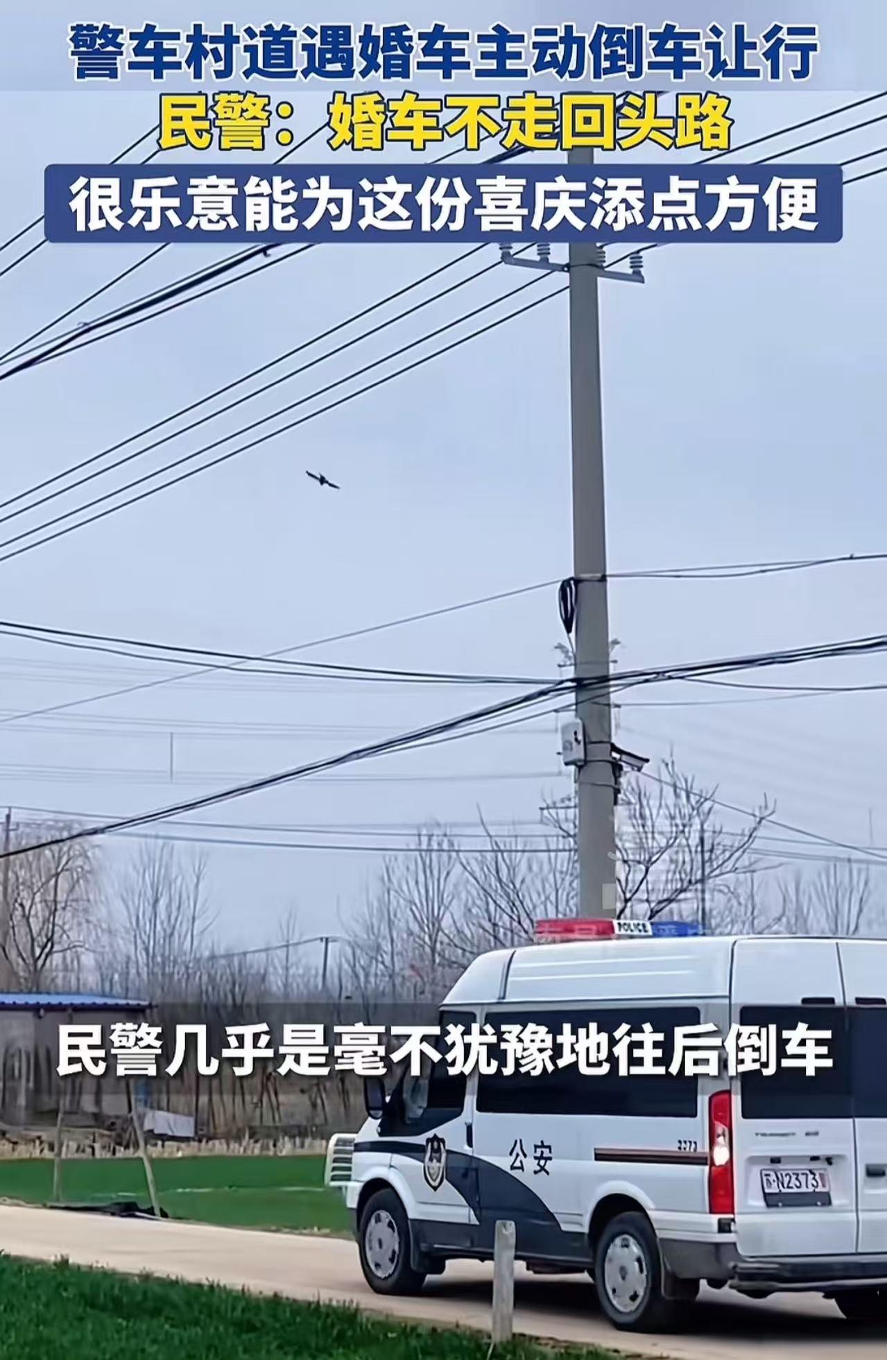“这个民警火了!”江苏,婚车在村道上遇到出警的警车,新郎心里一咯噔,婚车不走回头路,这警车会让自己吗?可是新郎还没下去请求,民警一个举动就令人泪目!网友:真棒。这才是警民一家亲! 大喜的日子,婚车车队,正浩浩荡荡地行驶在乡间小道上。 新郎官坐在头车里,心里既激动又紧张。按照老家的习俗,“婚车不走回头路”,图的就是个顺顺当当、白头偕老的好彩头。 可偏偏怕什么来什么。车队刚拐进一条狭窄的村道,对面一辆执行任务的警车迎面驶来。 村道本来就窄,两车相遇,必然有一方得退。 新郎心里“咯噔”一下,如果自己这边倒车,岂不是犯了‘走回头路’的忌讳?这大喜的日子,多不吉利啊!” 他手忙脚乱地解开安全带,推开车门就要下去,想着赶紧给民警敬个烟、赔个笑脸,求人家行个方便。 可是接下来发生的一幕,让他彻底愣住了,也让路边围观的乡亲们瞬间沸腾。 只见那辆警车,没有摆出执法者的架子等着新郎这边让路。 相反,他根本没有丝毫犹豫,主动往后倒车! 那一刻,新郎眼眶湿润了!他原本准备好的“求情话”一句也没用上,因为警察叔叔根本就没给他开口的机会,直接把“方便”送到了面前。 路边的村民们见状,纷纷竖起大拇指!事后,面对镜头,民警胡建笑得一脸朴实,轻描淡写地说:“没啥特别的。我想着人家结婚是大喜事,讲究个‘不走回头路’。我们警车退一下,也就是多花一两分钟的事儿,但能给人家添份喜庆,保全个好彩头,我们乐意!” 这份善意,很快有了回响。几天后,新郎专程制作了一面锦旗,送到派出所。 锦旗上金灿灿的大字,不仅是感谢,更是一份沉甸甸的敬意。这哪里是简单的让路?这分明是警民之间最动人的“双向奔赴”! 【网友热议】 “看到民警毫不犹豫倒车的那一刻,我眼泪直接下来了。他守护的不仅是交通秩序,更是老百姓心里的那份传统和期盼。” “以前总觉得警察严肃、有距离感。今天才发现,原来他们也会为了你的幸福,甘愿‘退后一步’。这一退,退出了格局,退出了民心!” “这就是咱们中国的民警!有事真上,有情真讲。为这份警民鱼水情点赞!” 【评语】 这一退,退出的不仅仅是几米道路,更是权力的温情与人性的光辉。 很多人误以为,威严就是高高在上、不容置疑。 但胡建警官用行动证明:最高级的威严,是俯身向下;最硬核的担当,是体贴入微。 他懂民俗、知冷暖,把群众的“忌讳”当成自己的“大事”。 这种“眼里有活、心里有人”的执法温度,比任何冷冰冰的法条都更能直抵人心。 警民关系不是管与被管的对立,而是心与心的交融。 当警察愿意为了百姓的喜事发愁、为了让路而倒车时,这道“警蓝”就成了世间最让人安心的色彩。 致敬胡建警官,以及千千万万像他一样的基层民警!你们是和平年代的守护者,也是烟火人间里的“暖心人”。 你们让出的道路,通往的是民心所向的康庄大道!有你们在,百姓心安;有你们在,温暖常在!