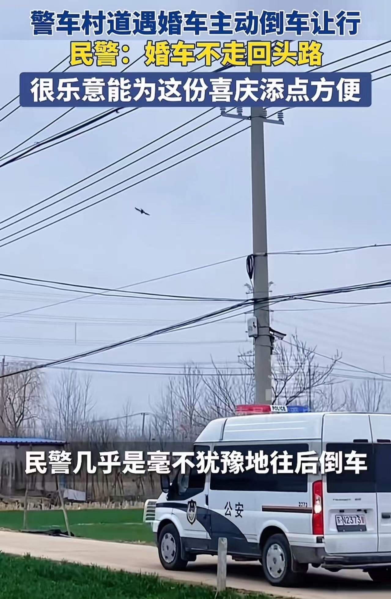 婚车在村道上遇到出警的警车,新郎心里一咯噔,婚车不走回头路,这警车会让自己吗?可