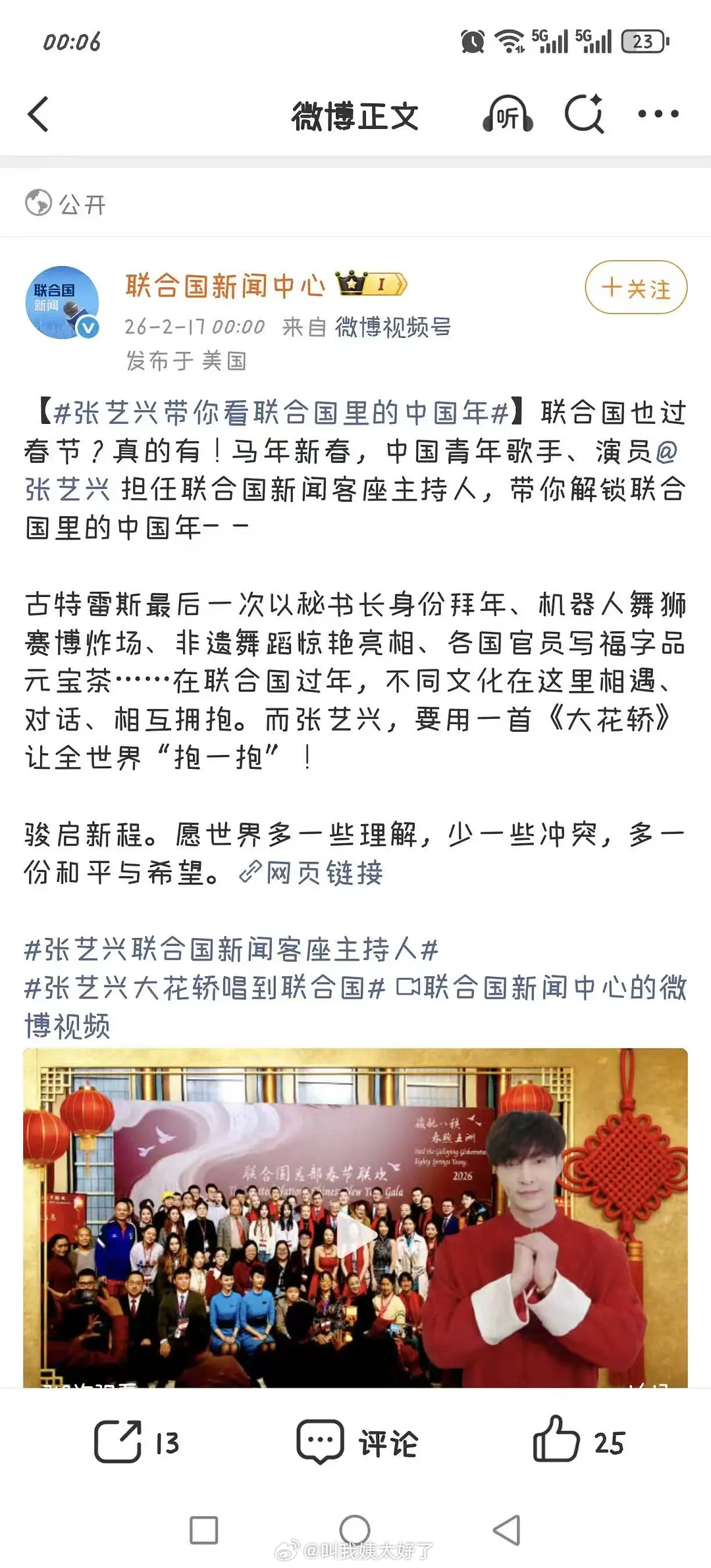 张艺兴粉丝辟谣:手术在休息中,刚参加过联合国的项目。这种没凭没据的,还是不要太发
