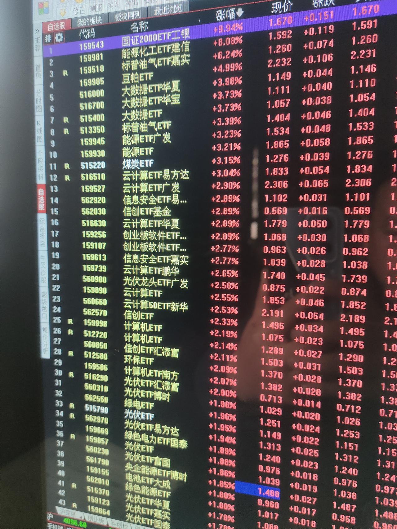 可以很明显的感觉到石油不落,其它板块就起不来,我们可以清楚的看到石油ETF从开盘涨8%到收盘收绿,也可以清楚的看到通信ETF开盘就跌近7%,收盘只跌2%,人工智能从开盘跌4.80%到收盘只跌0.90%,半导体ETF,人工智能ETF,卫星ETF,机器人ETF,科创50ETF无一不是这样。正所谓一鲸落万物生。石油里面的钱大幅流出,这些板块承接住了,就这么简单!
