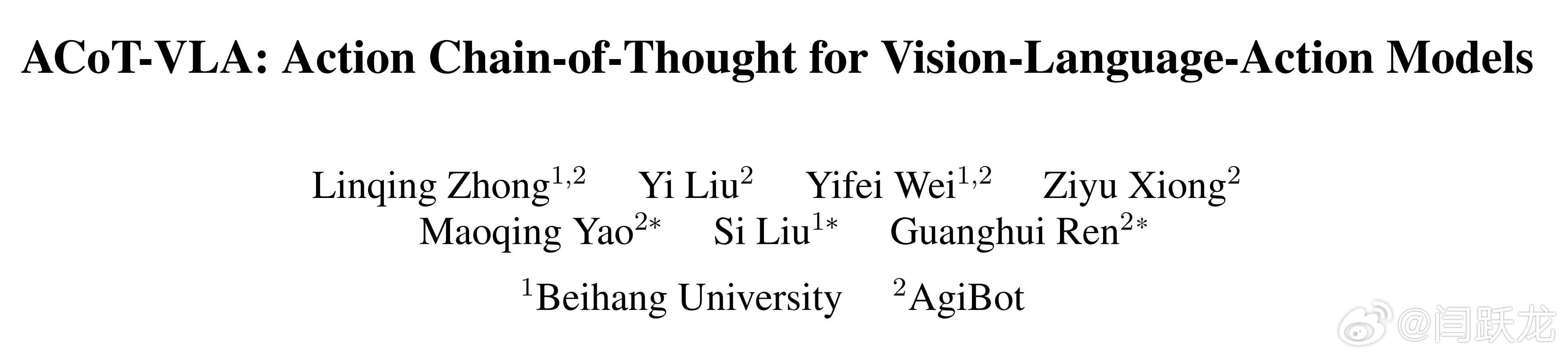 近日,智元(AGIBOT)联合北京航空航天大学提出的 ACoT-VLA(Action Chain-of-Thought)架构成功入选计算机视觉顶会 CVPR 2026。该研究打破了传统VLA模型“语义强、动作弱”的瓶颈,首次提出在“动作空间”进行推理的思维链范式。作为具身智能生态建设的重要举措,智元机器人已将 ACoT-VLA 作为 AGIBOT WORLD CHALLENGE的官方基线模型正式开源,助力全球开发者攻克复杂机器人操控难题。AGIBOT WORLD CHALLENGE是由智元发起的全球性具身智能挑战赛,旨在攻克真实场景下的机器人通用操控难题。参赛者可基于 ACoT-VLA 开源代码,在智元提供的AgiBot World Colosseo仿真平台Genie Sim 3.0上进行二次开发与创新。