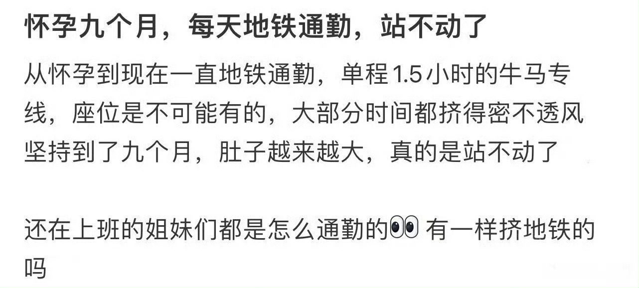 怀孕九个月,每天地铁通勤,站不动了