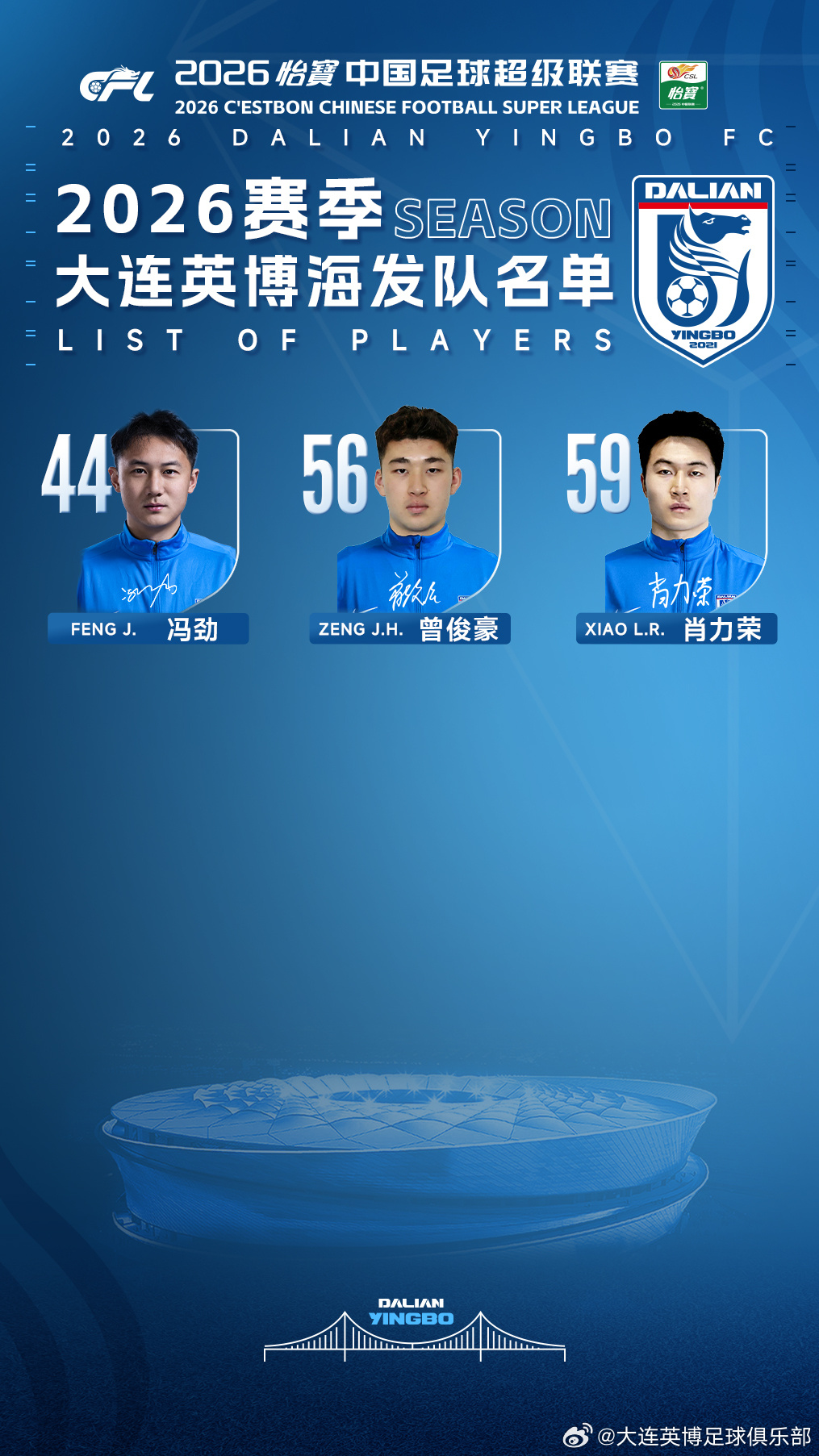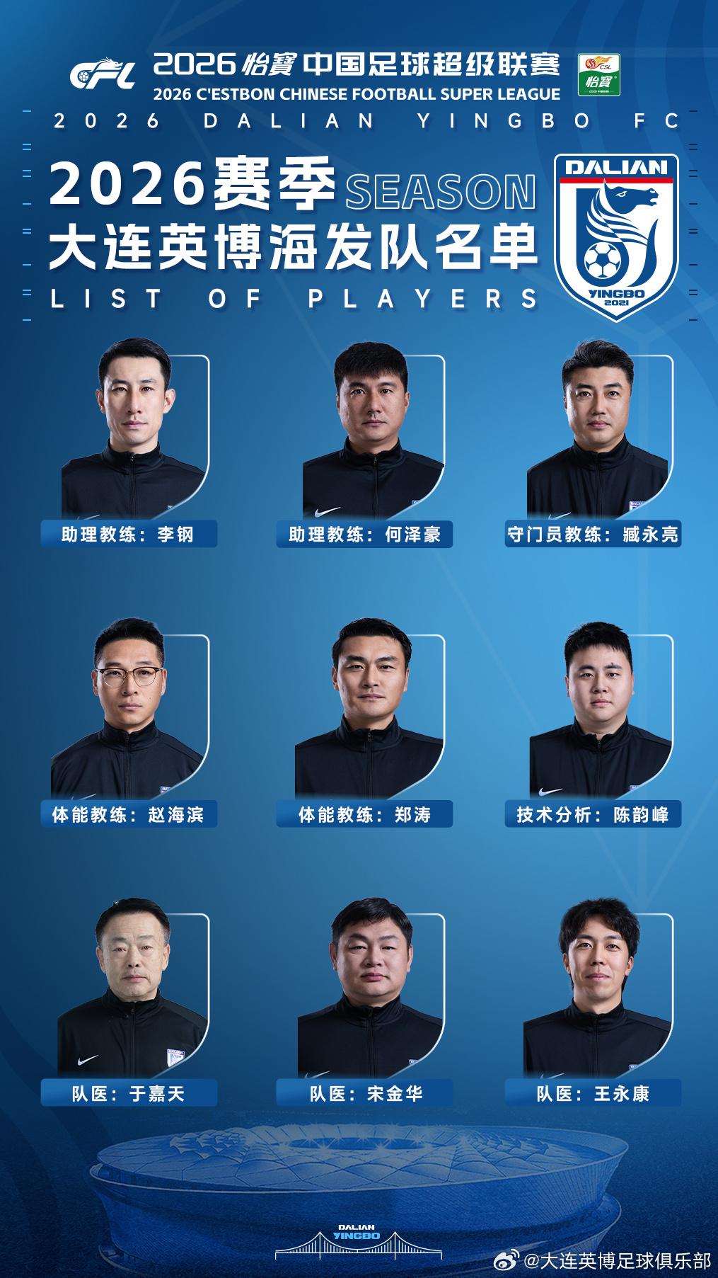 2026赛季大连英博海发队名单大连英博大连英博