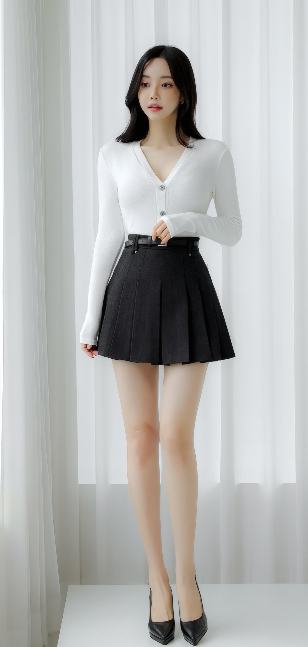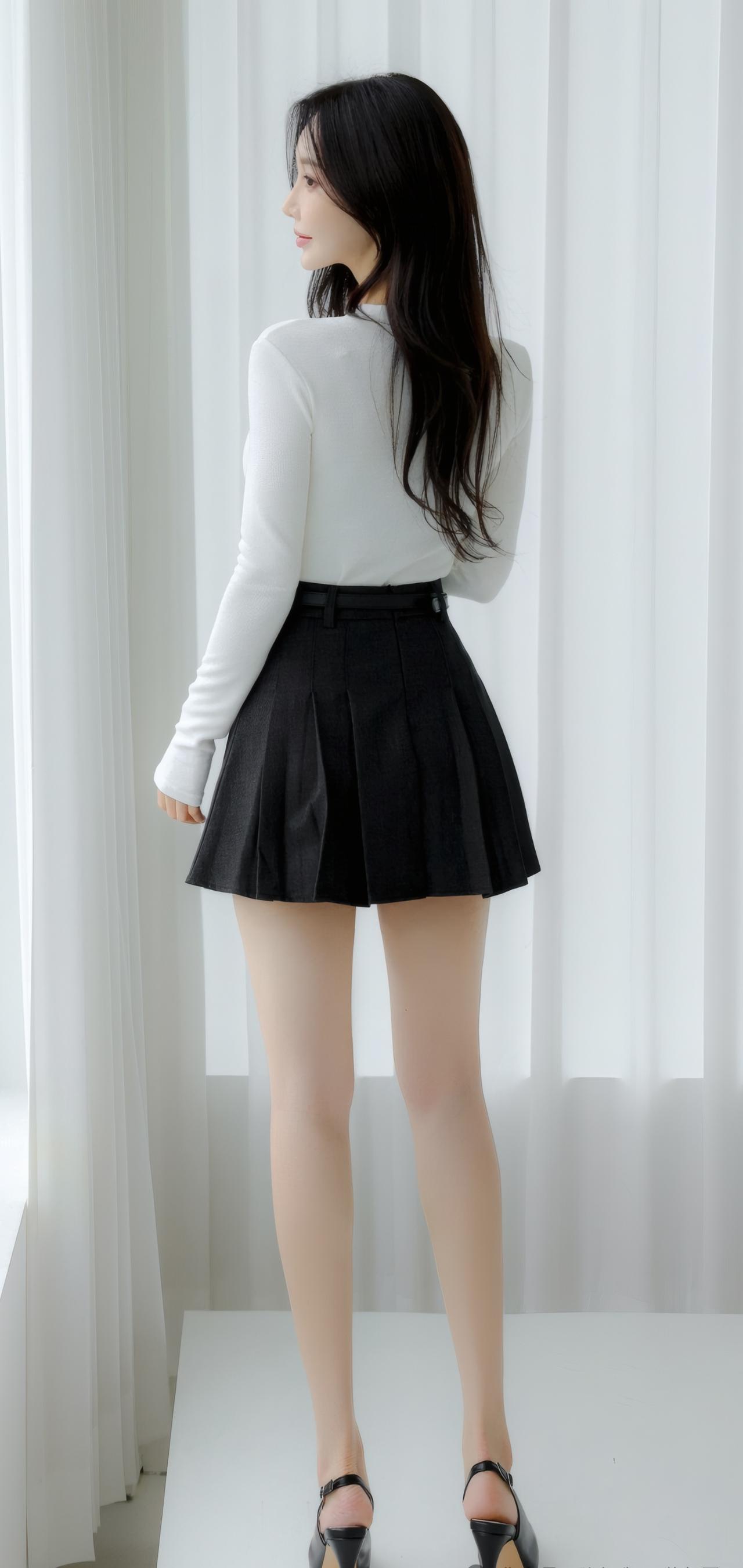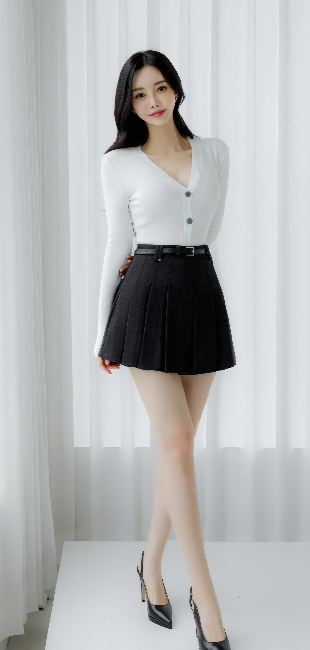 简约优雅,白色针织衫搭配黑色百褶裙,清新自然,尽显女性魅力。