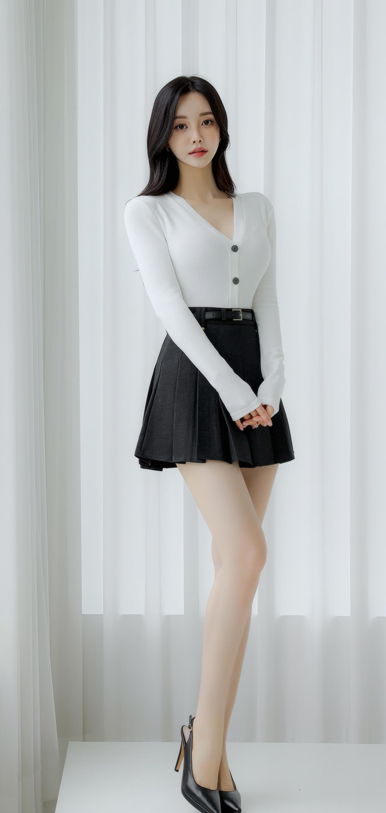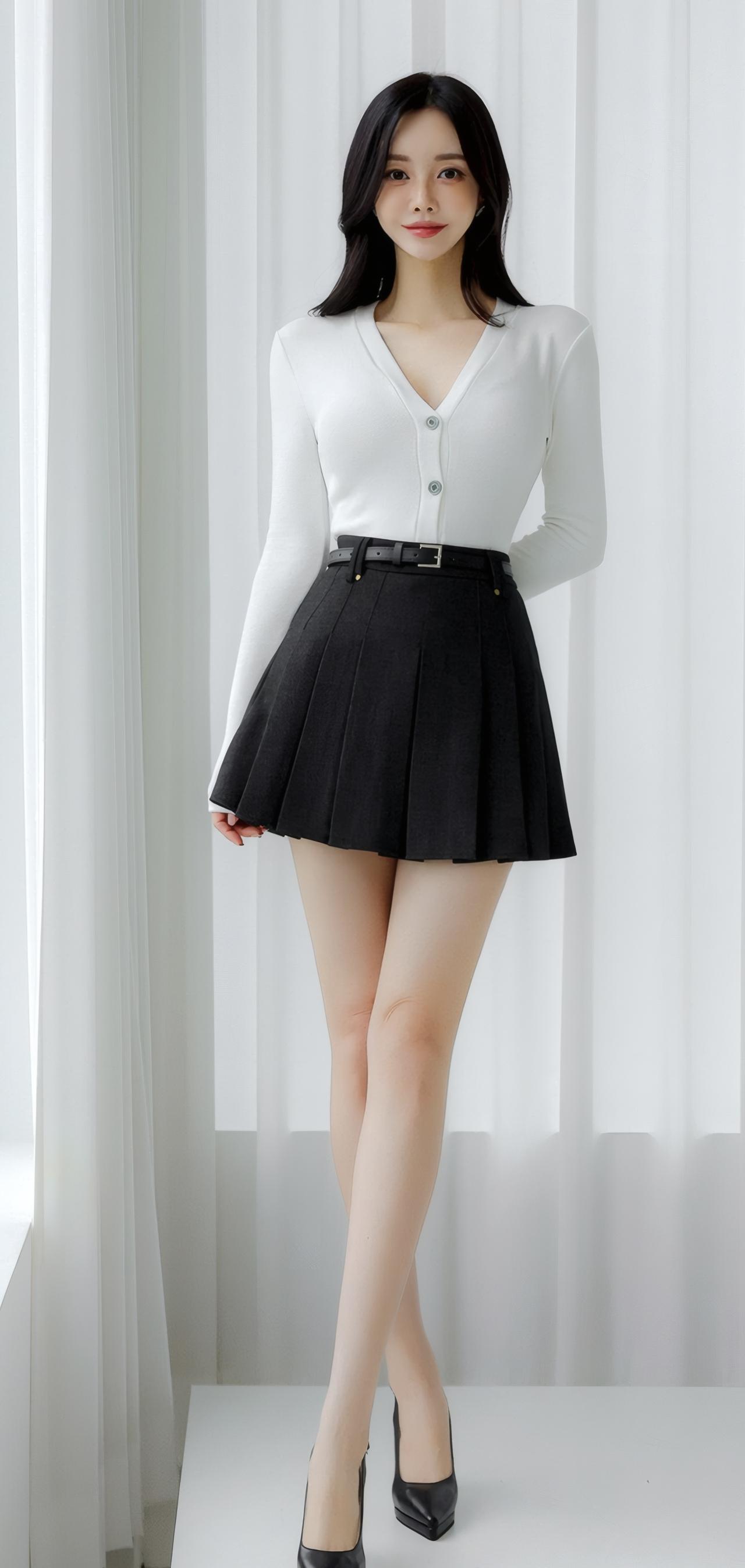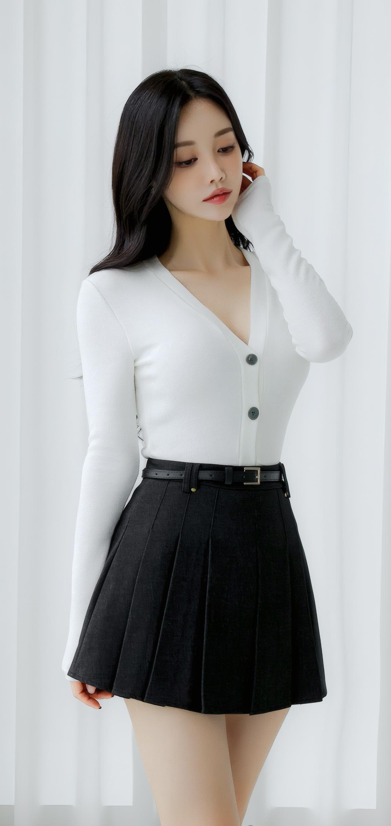 简约优雅,白色针织衫搭配黑色百褶裙,清新自然,尽显女性魅力。