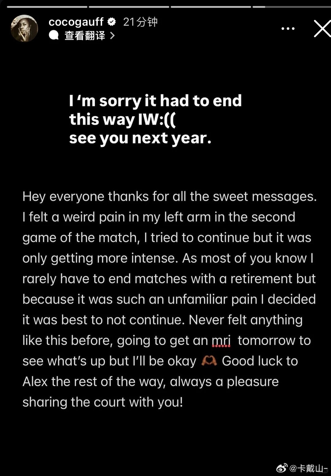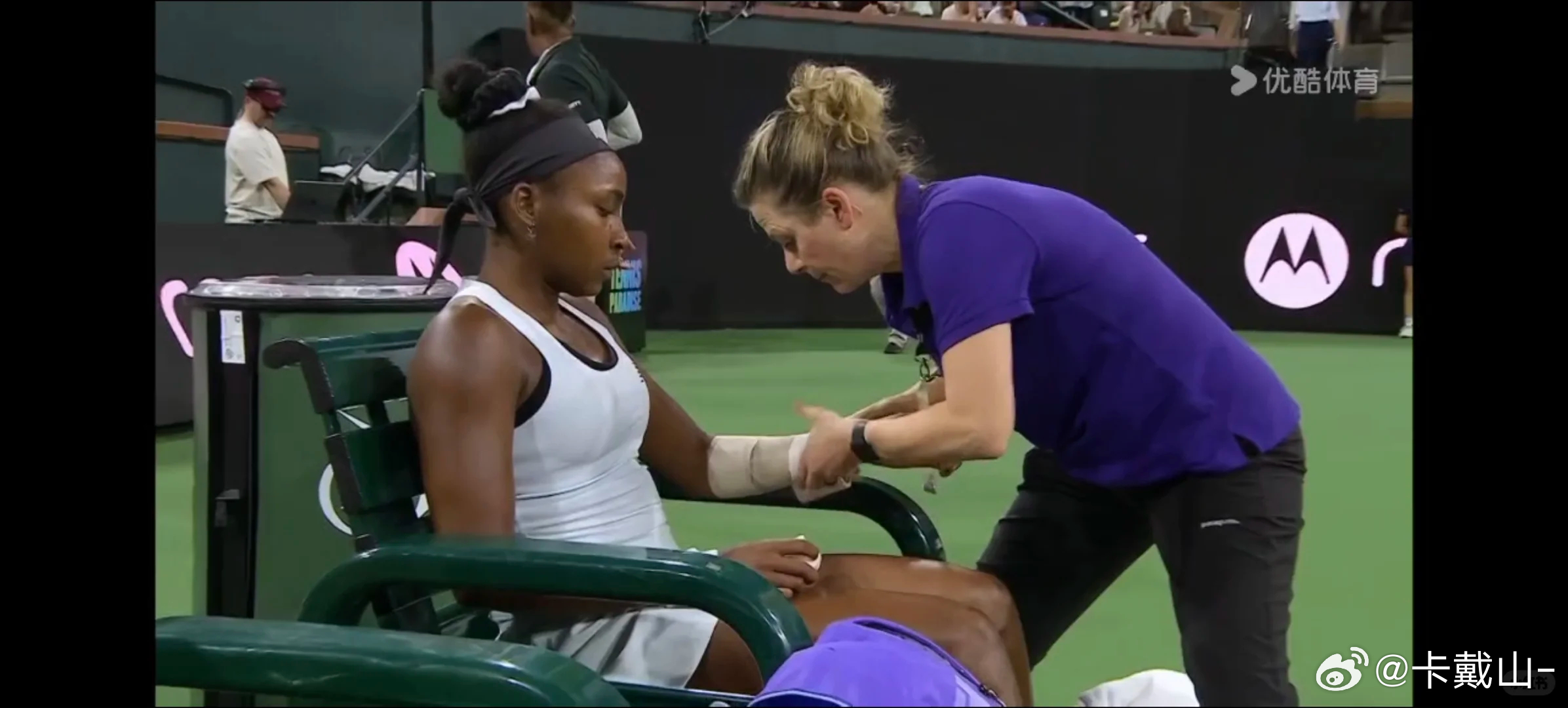 网球肘?爆冷!高芙伤退,埃拉首进印第安维尔斯16强。有一个评论好好笑,“职业网球