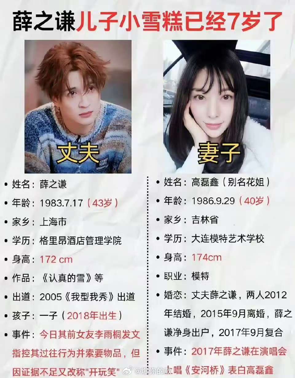 薛之谦高磊鑫二胎薛之谦和高磊鑫在2012年领证结婚,2015年9月薛之谦宣布自己